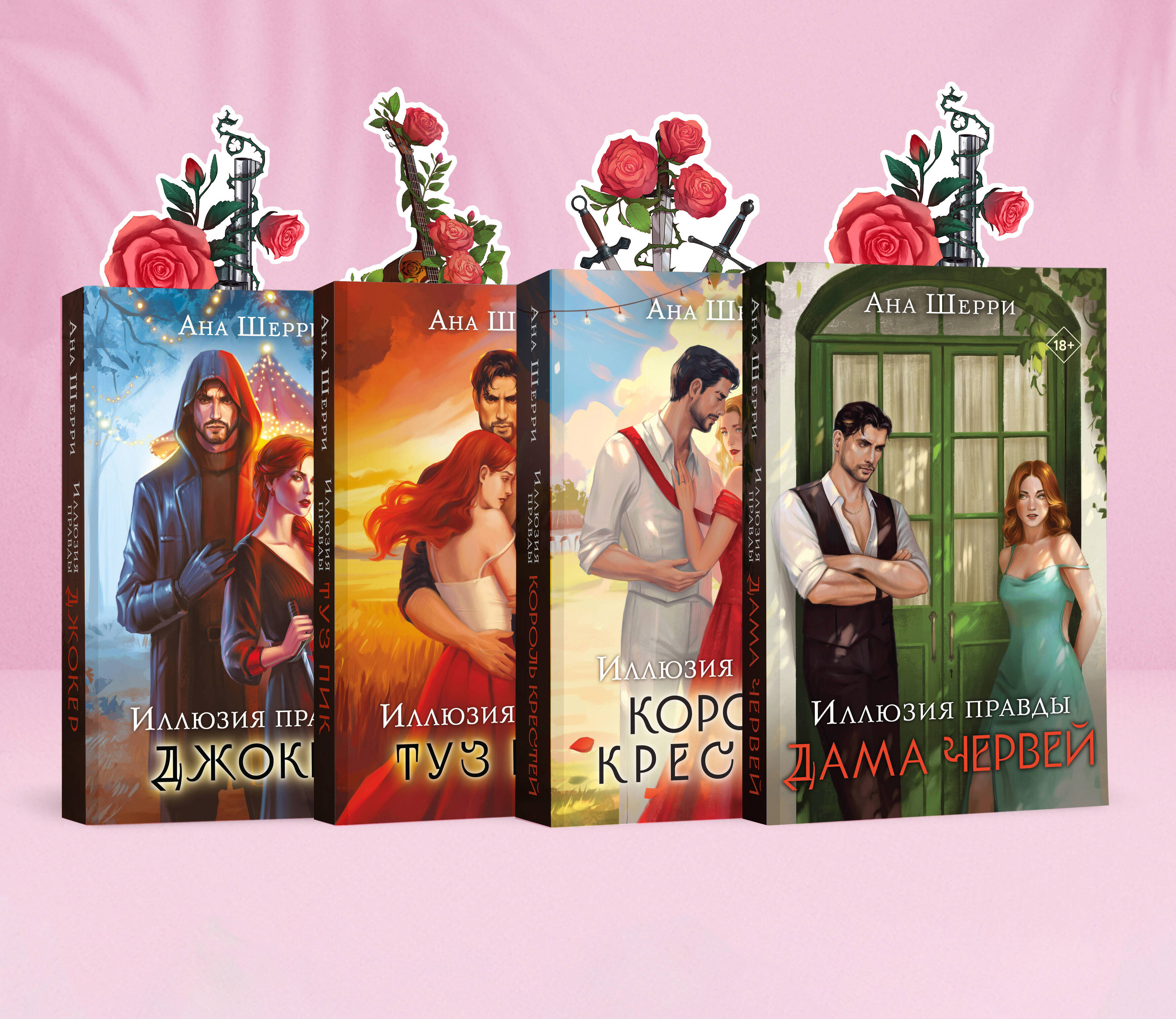 Комплект из 4-х книг Аны Шерри: «Иллюзия правды. Дама червей» + «Иллюзия правды. Король крестей» + «Иллюзия правды. Туз пик» + «Иллюзия правды. Джокер» и ТРИ красивые подарочные открытки в ПОДАРОК!