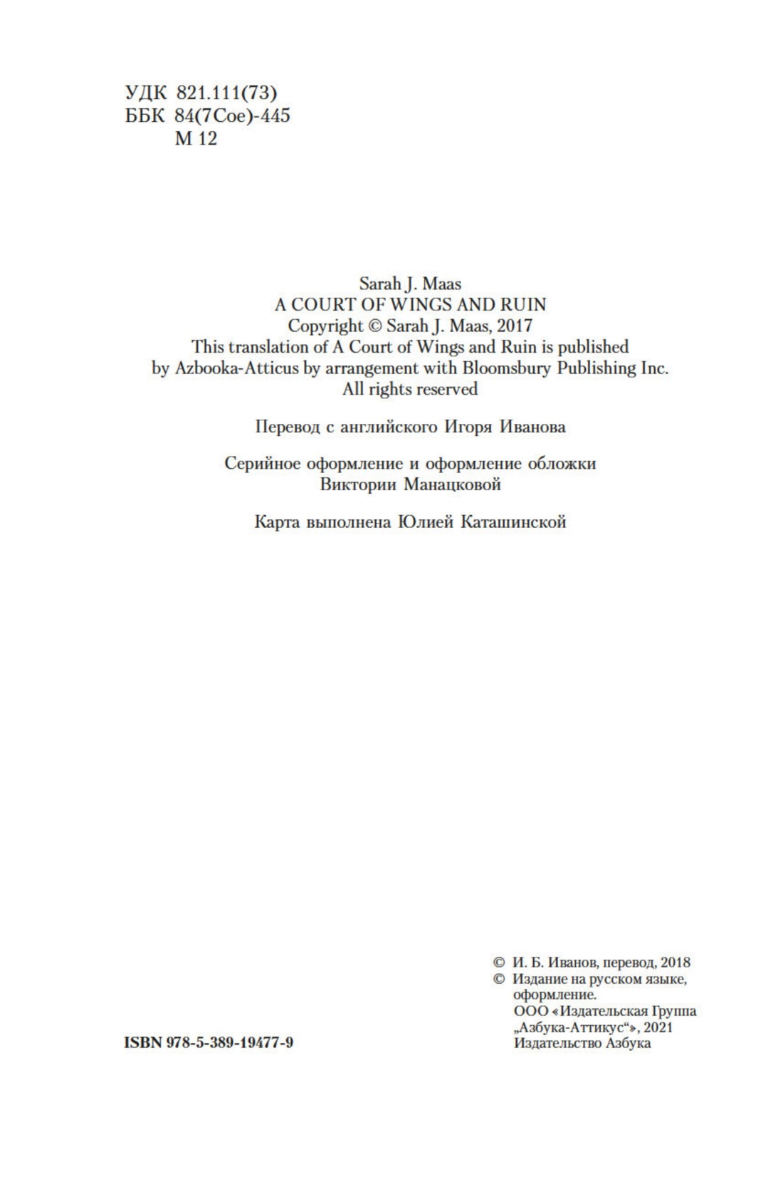 | Вес (кг) 0.8 | Серия С. Дж. Маас. Новая фэнтези | ISBN 978-5-389-19477-9 |