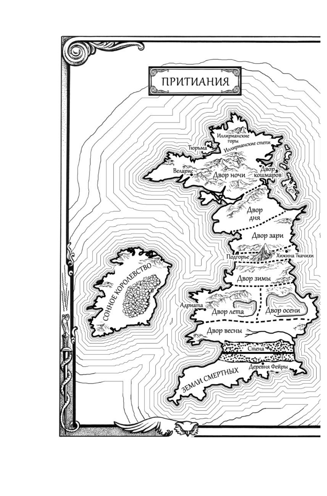Тамлин, верховный правитель Двора весны, вступает в сговор с правителем Сонного королевства, собравшимся захватить и подчинить своей власти всю Притианию. Армии короля вот-вот вторгнутся в земли фэйри. Наделенная магическими способностями и обретшая бессмертие Фейра покидает Двор ночи, понимая, что в сложившейся ситуации ее бездействие смерти подобно. Но кому из верховных правителей, увязших в давних противоречиях, может она теперь доверять? Где ей искать союзников? Фейре остается одно: ради спасения Притиании плести паутину лжи, предавая собственную натуру...