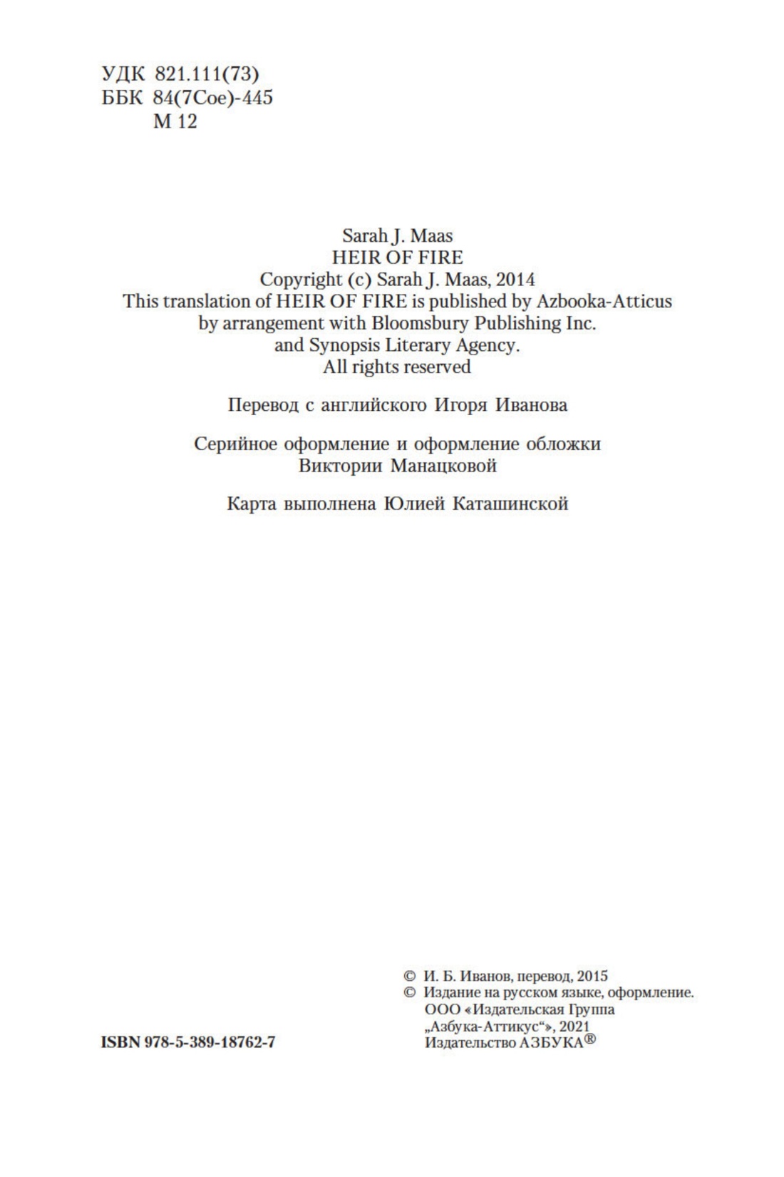 | Вес (кг) 0.698 | Серия С. Дж. Маас. Новая фэнтези | ISBN 978-5-389-18762-7 |