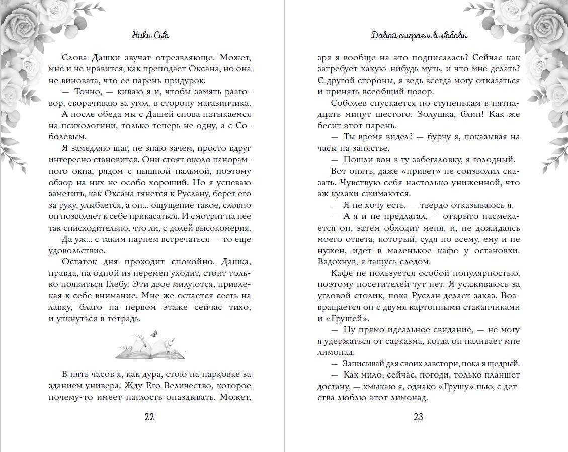 «Давай сыграем в любовь» — первая часть дилогии о Кристине и Руслане. Роман придется по душе поклонникам тропа «фальшивые отношения», а также тем, кто любит истории в антураже университета. История была тепло принята на портале «Литнет», где уже набрала более 1,2 млн прочтений!