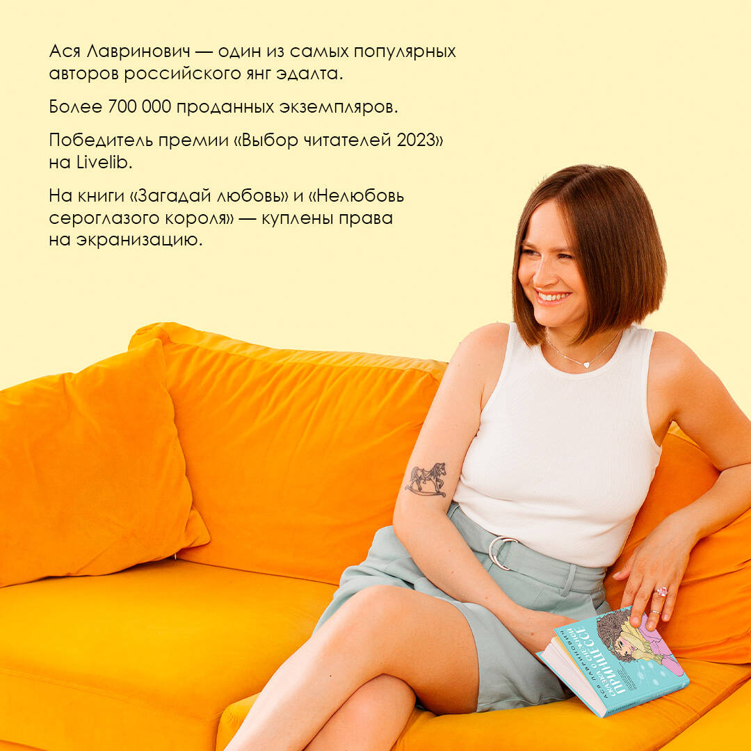 Ася Лавринович — один из самых популярных авторов российского янг эдалта в жанре современной сентиментальной прозы. Суммарный тираж ее проданных книг составляет более 1 млн экземпляров. Победитель премии «Выбор читателей 2023» на Livelib в номинации «Young adult. Лучшая книга о подростках и для подростков». На две книги Аси — «Загадай любовь» и «Нелюбовь сероглазого короля» — куплены права на экранизацию.