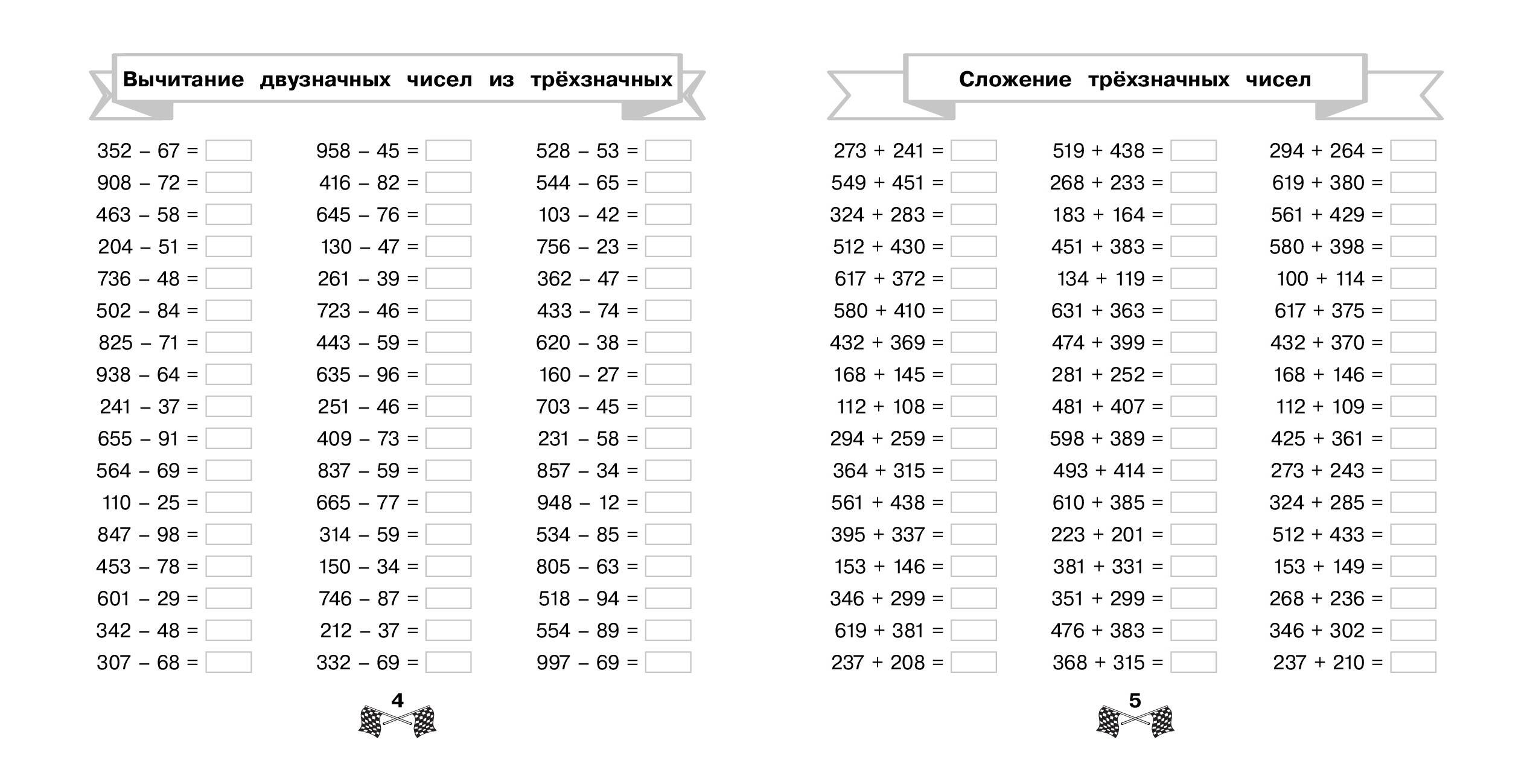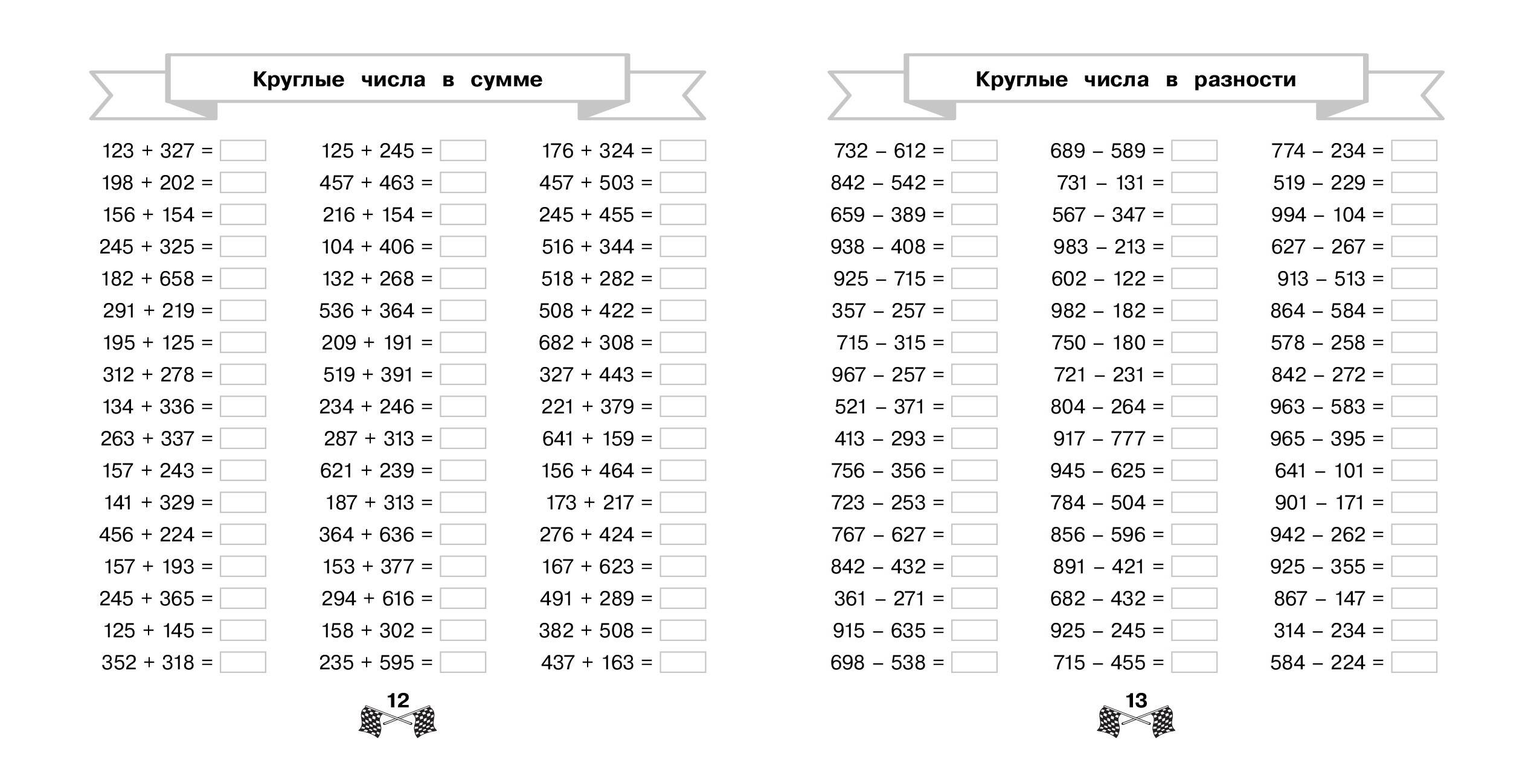 Сложение и вычитание в пределах 1000 за 15 минут в день