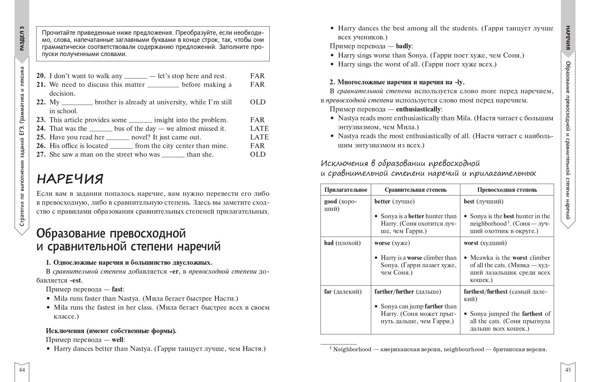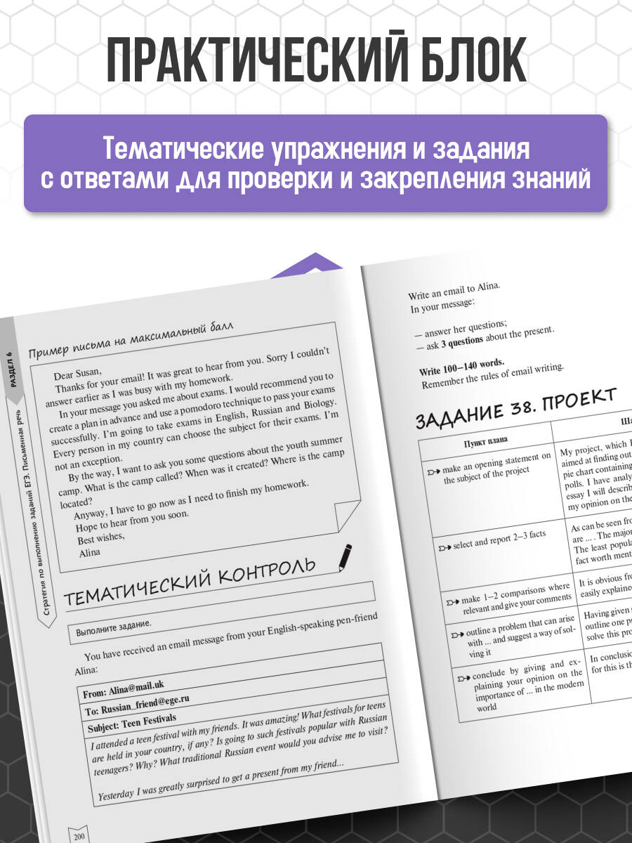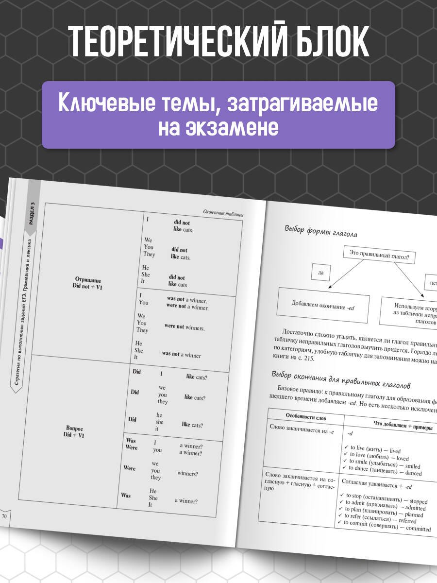 Данный справочник — идеальный вариант для тех, кто стремится сдать экзамен на «отлично», потому что он сочетает в себе глубокую теоретическую базу, как в учебнике, с обширной практической частью. Каждый раздел книги тщательно проработан опытным специалистом и преподавателем, чтобы помочь вам разобраться даже в самых сложных аспектах английского языка!