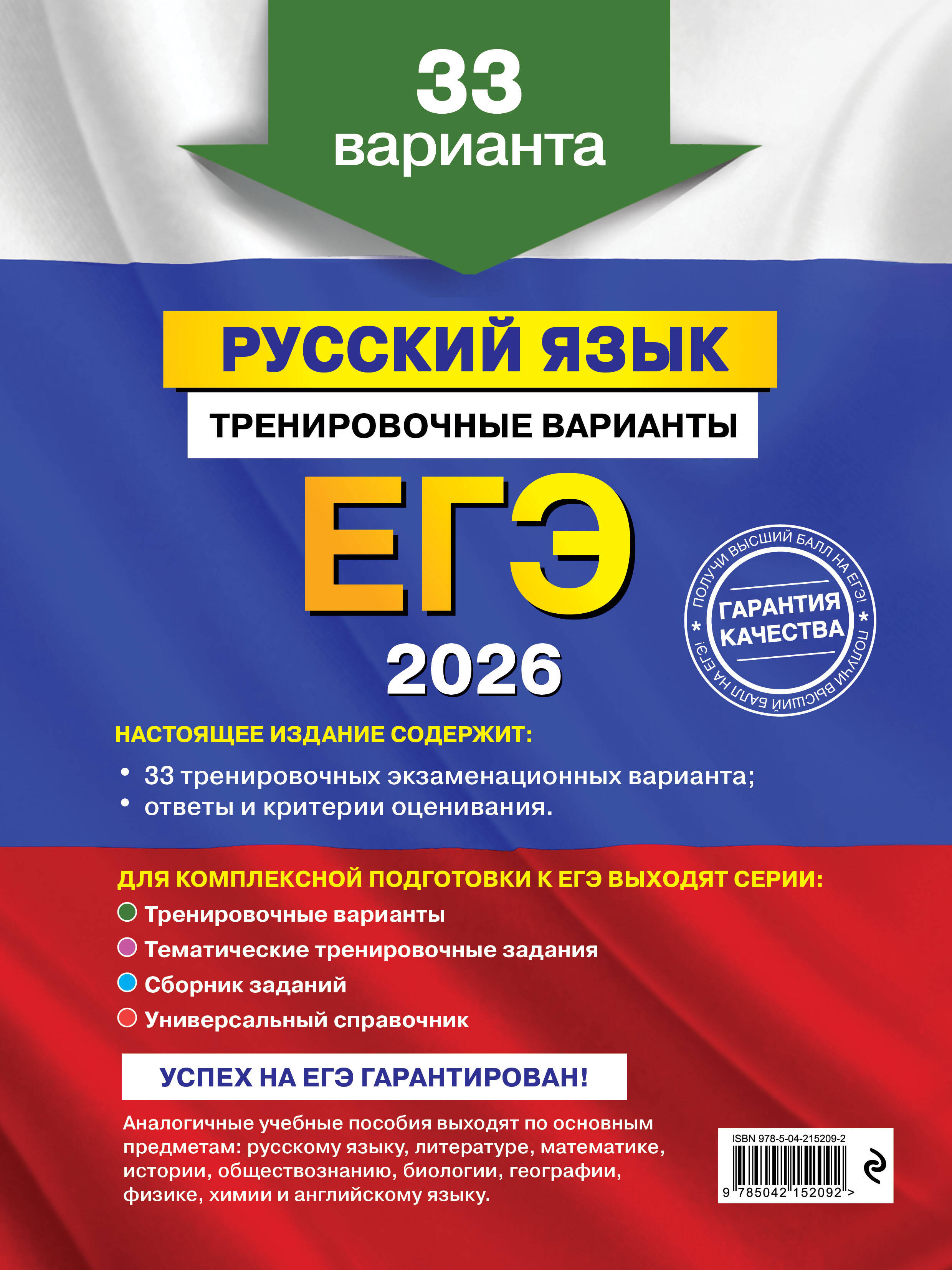 Пособие ЕГЭ-2026 содержит 33 тренировочных варианта, соответствующих структуре экзаменационной работы и составленных с учетом требований ЕГЭ.
