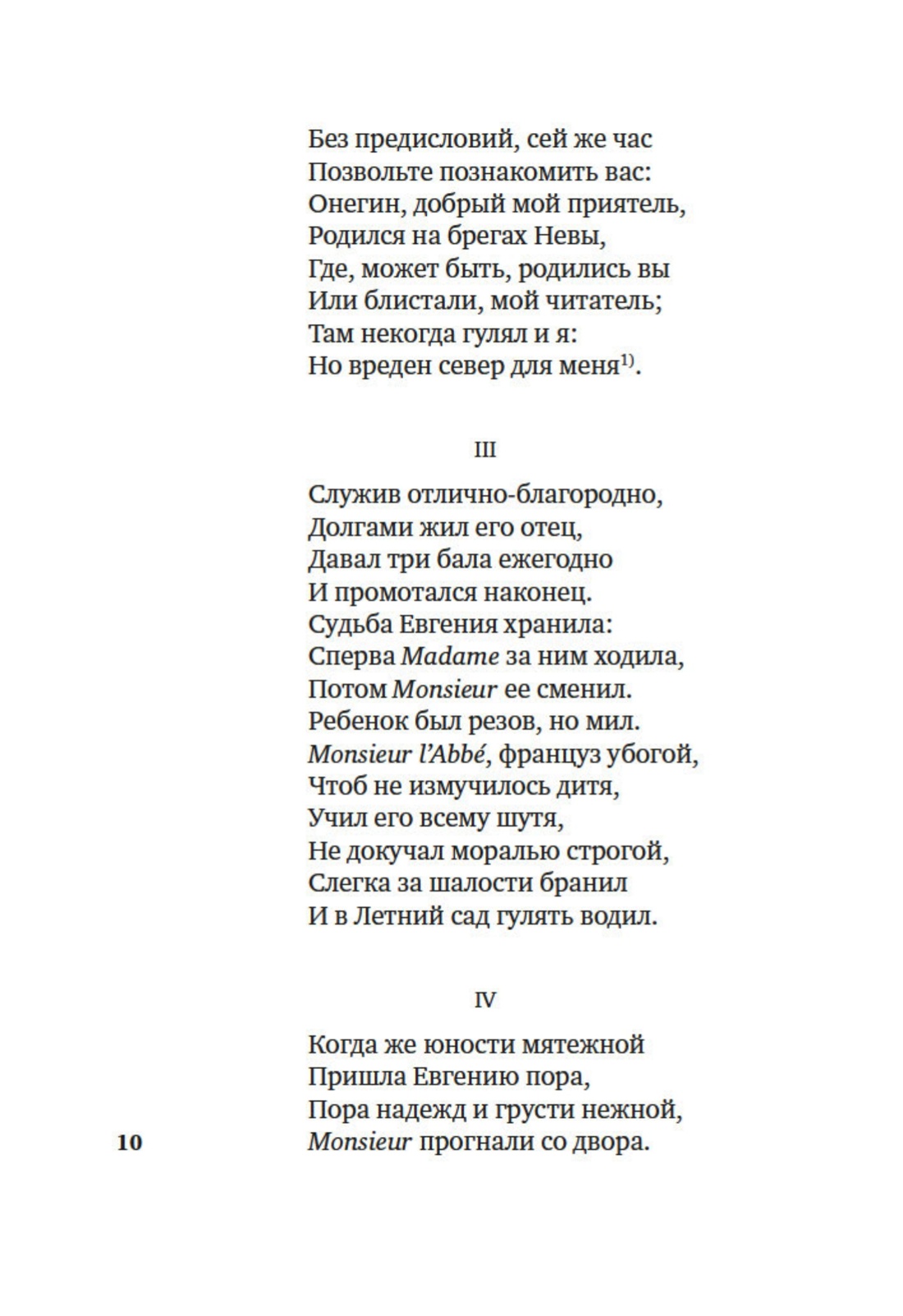Роман в стихах «Евгений Онегин» — самое известное и самое значительное произведение А. С. Пушкина, вершина русской поэзии и предмет многочисленных исследований. Пушкин начал писать роман в мае 1823 года, а закончил только осенью 1831 года, когда было создано «Письмо Онегина к Татьяне». Осенью 1823 года он сообщал друзьям: «...Я теперь пишу не роман, а роман в стихах — дьявольская разница...»