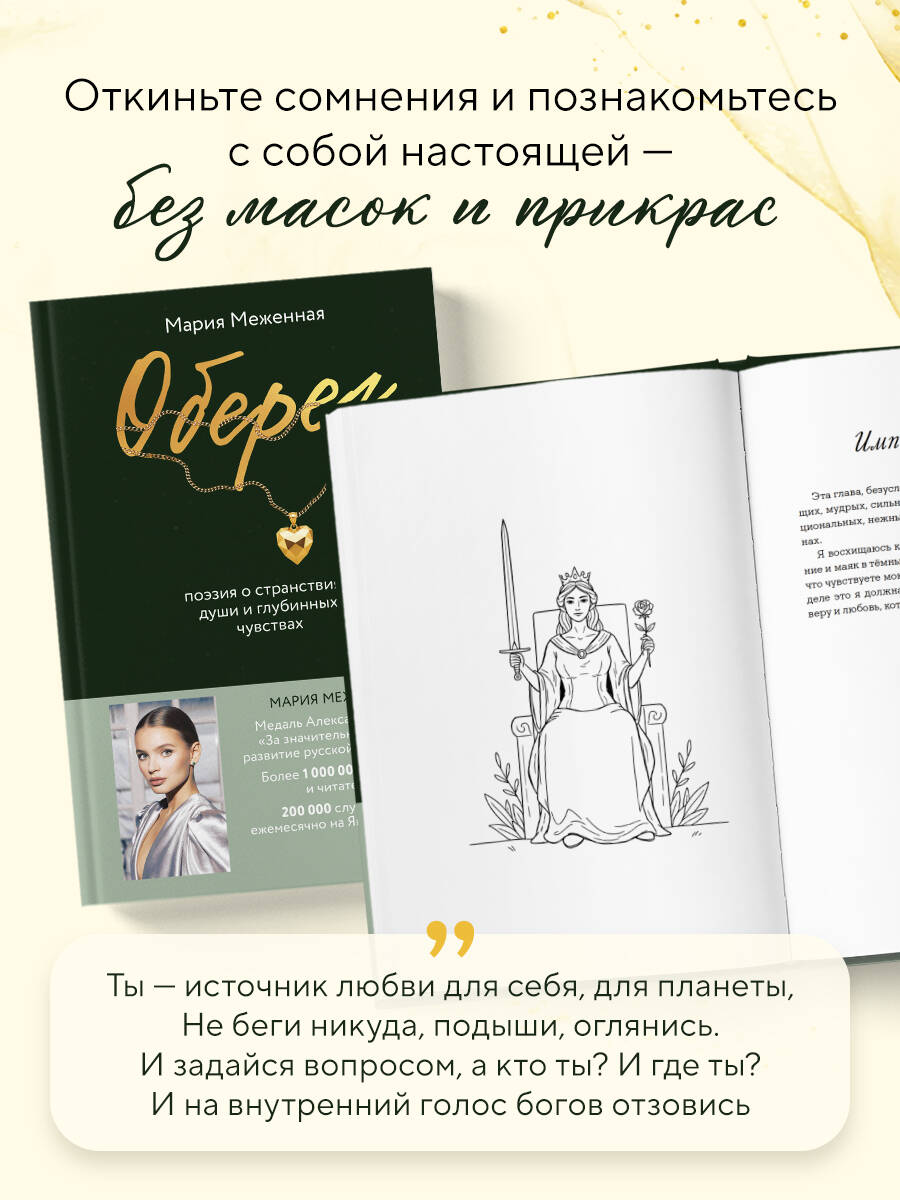 «Оберег» — книга-талисман. Каждое стихотворение в ней — путеводная нить на перекрестке, огонь свечи в темноте, рука, которая держит над пропастью. Эти стихи могут быть и утешением, и откровением, и дерзким вызовом миру — тем самым оберегом, который хранит, вдохновляет и ведет вперед.