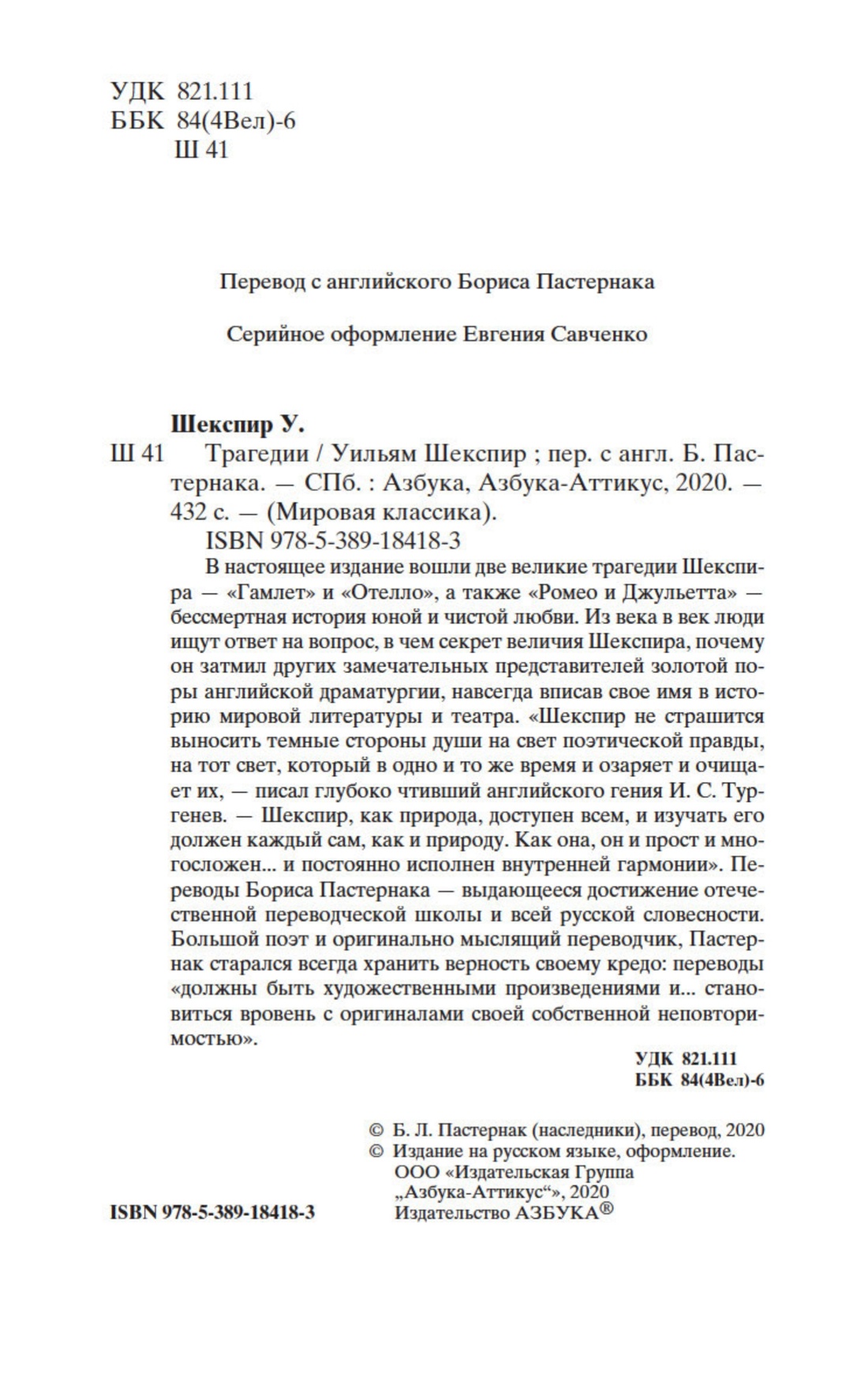 | Вес (кг) 0.337 | Серия Мировая классика | ISBN 978-5-389-18418-3 |