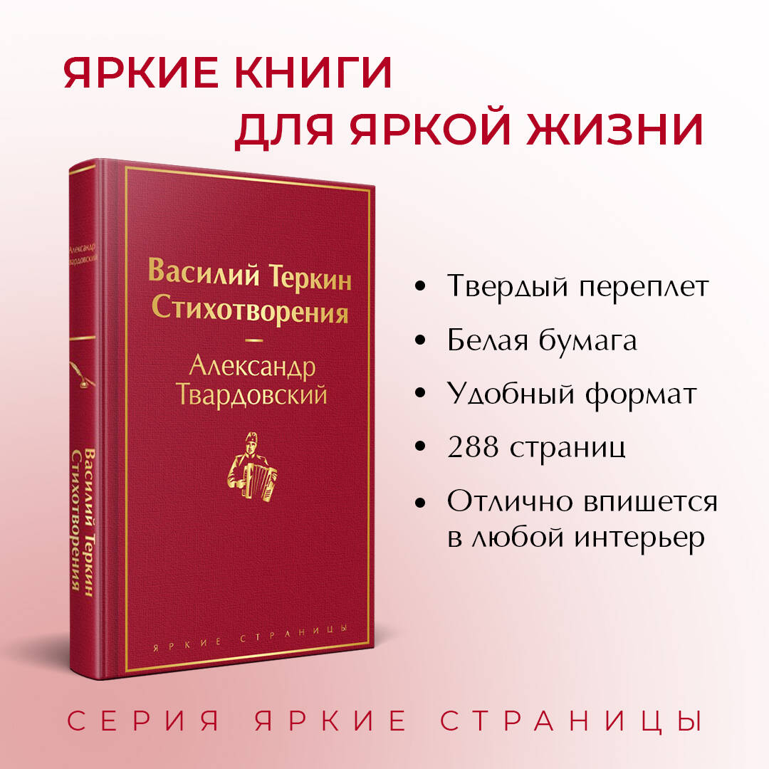 Александр Твардовский сумел передать весь героизм простого советского солдата искусно и выразительно. В книгу вошли также известные стихотворения "Я убит подо Ржевом...", "Рассказ танкиста", "В тот день, когда окончилась война" и другие произведения. Стихотворения Александра Твардовского и поэма "Василий Тёркин" стали одними из основных шедевров советской литературы, побуждающих задуматься о смысле человеческой судьбы и ценности мирной жизни.