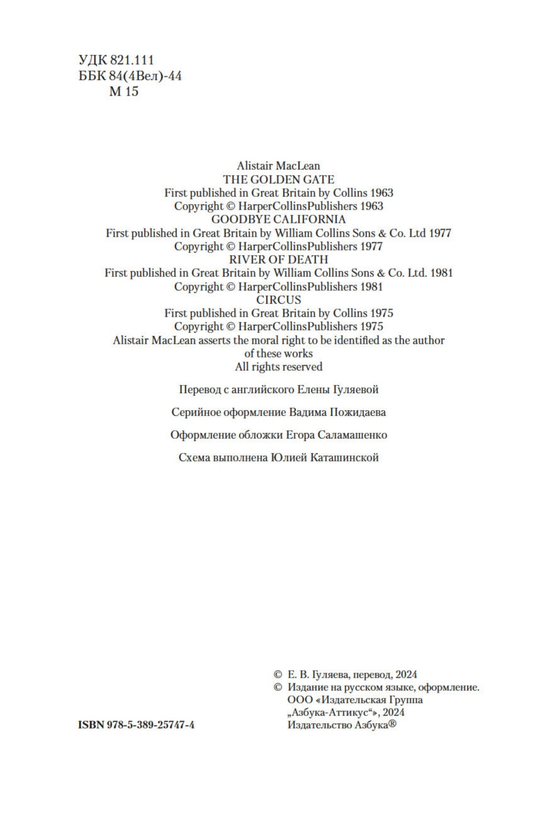 Алистер Маклин (1922–1987) — британский писатель, автор 28 остросюжетных романов и приключенческих рассказов, сценарист. Его имя широко известно читателям всего мира. Книги Маклина разошлись тиражом более 150 миллионов экземпляров, по его романам, сценариям и сюжетам было снято 18 фильмов. В 1983 году Университет Глазго присвоил писателю степень доктора литературоведения.
