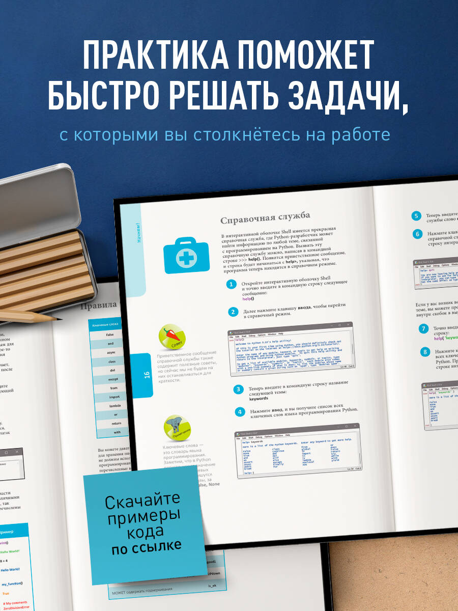 Благодаря практическим заданиям вы получите отличное представление об основах программирования на языке Python. Просто следуйте инструкциям — и научитесь создавать простые программы, разберетесь с ключевыми концепциями разработки и поймете, как применять Python для решения практических задач.