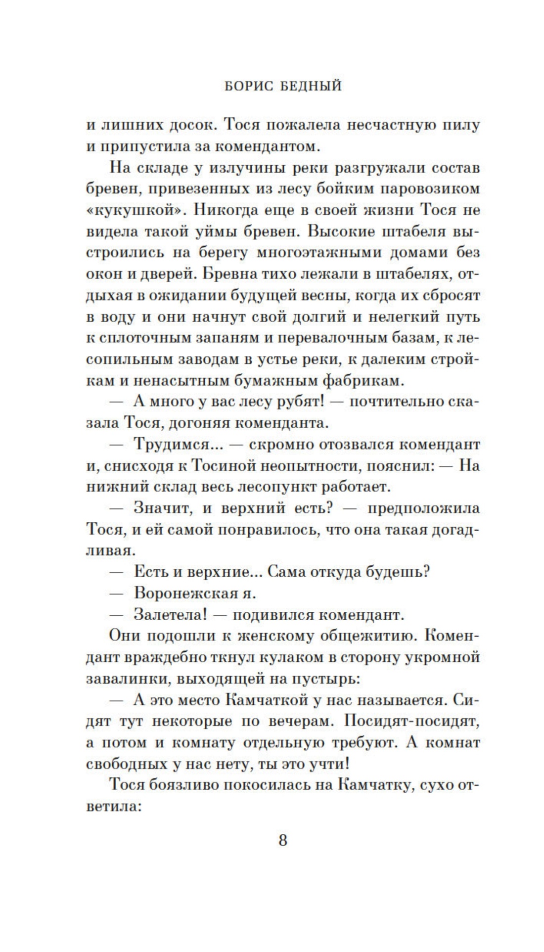 Борис Васильевич Бедный — советский писатель, ветеран Великой Отечественной войны, преподавал в Литературном институте на Высших литературных курсах (среди его учеников много прославленных писателей, например Чингиз Айтматов). Славу Борису Бедному принесла повесть «Девчата», переведенная на пятнадцать иностранных языков и легшая в основу одноименной кинокартины. Каждому в России хорошо знаком фильм «Девчата», снятый в 1961 году режиссером Юрием Чулюкиным, где главные роли исполнили Надежда Румянцева и Николай Рыбников. Веселая комедия о любви в затерянном на Урале поселке лесорубов не только покорила зрителей по всему Советскому Союзу, но и получила несколько престижных призов на зарубежных кинофестивалях. Повесть «Девчата», однако, во многом отличается от знаменитой картины: глубже раскрыты характеры героев, суровая жизнь в далеком поселке показана значительно реалистичнее, и даже в сюжете встречаются существенные различия.
