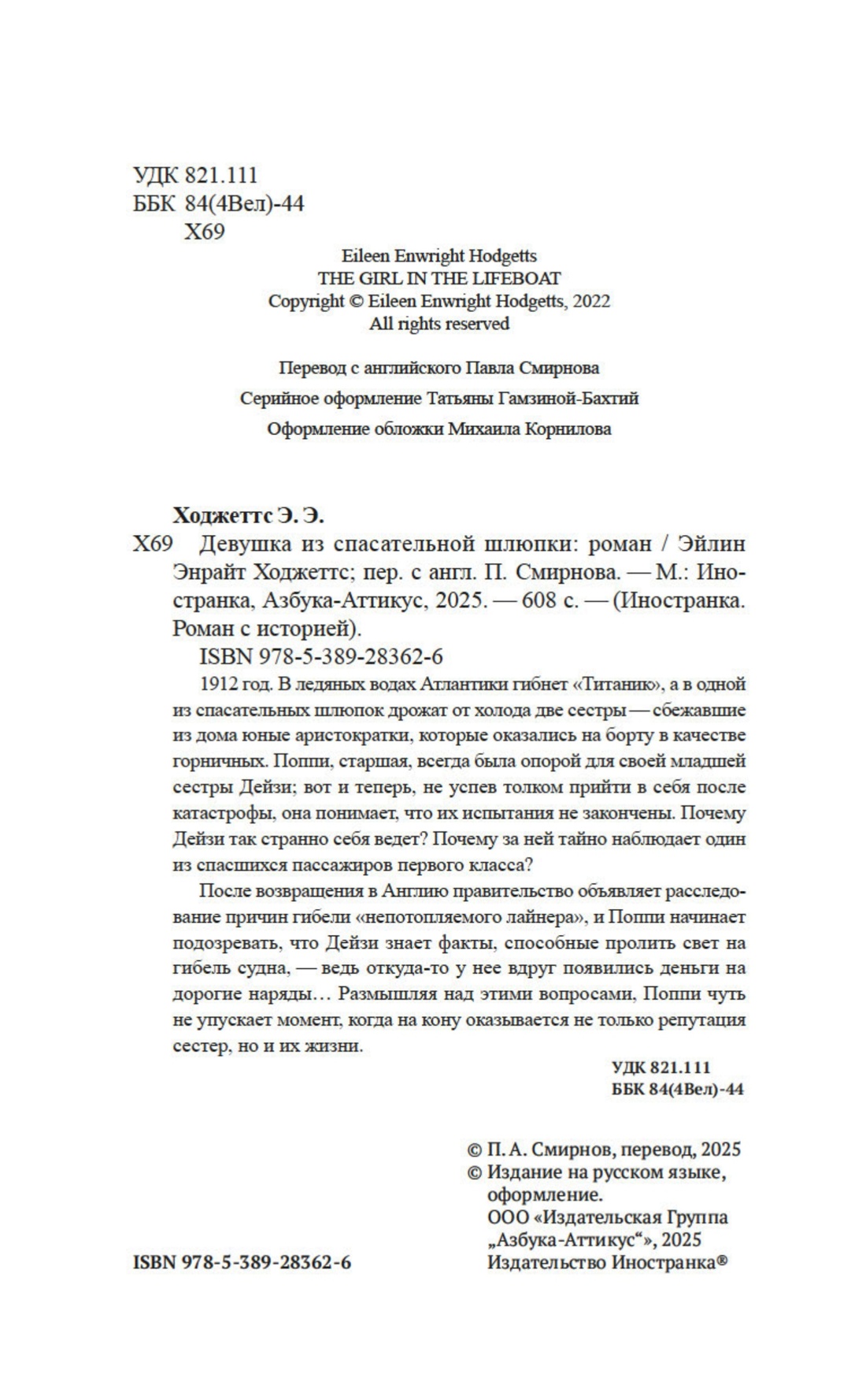 | Вес (кг) 0.618 | Серия Иностранка. Роман с историей | ISBN 978-5-389-28362-6 |