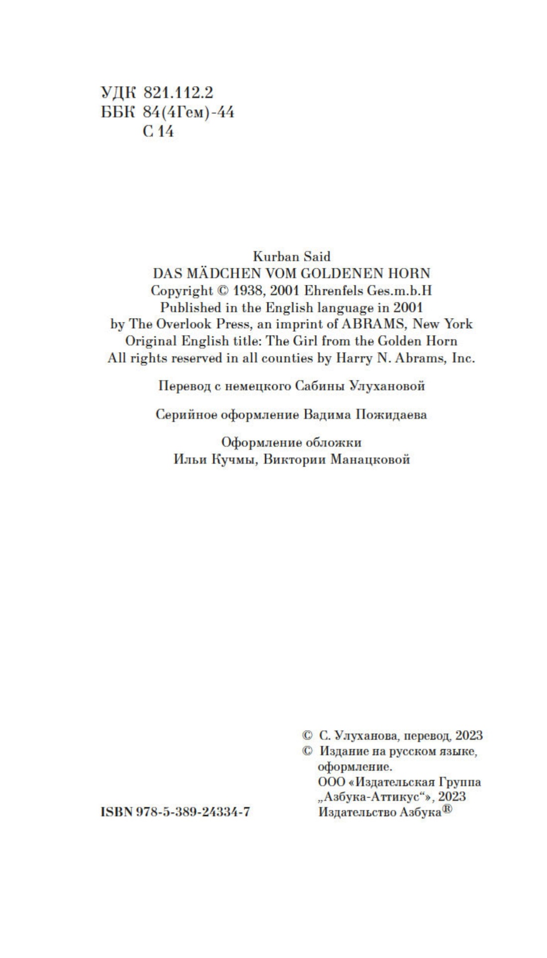 Личность Курбана Саида загадочна, как его книги. Подлинное имя автора, скрывающегося за этим псевдонимом, до сих пор вызывает споры. Не менее темна история самого известного его романа «Али и Нино»: изданная в 1937 году книга была крепко забыта вплоть до 1970 года, когда, после одновременного издания в Америке и Англии, ее персонажи триумфально вернулись на прилавки книжных магазинов. «Девушка из Золотого Рога» — второй роман автора, драматичная история молодой турчанки, которая должна была стать одной из жен османского паши, однако вынуждена покинуть Турцию и жить в Берлине, приспосабливаясь к обычаям и привычкам европейской жизни.