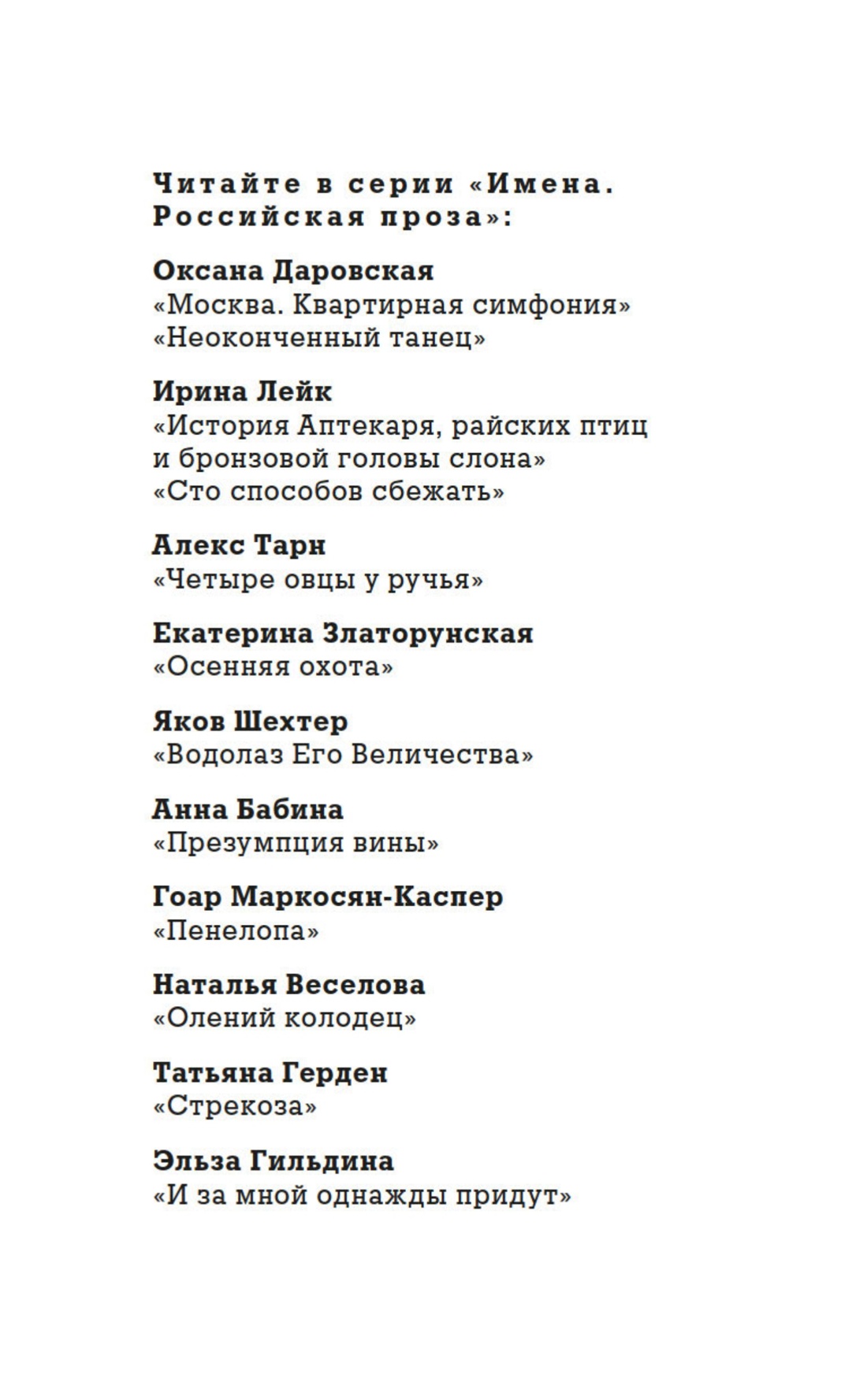 | Серия | Имена. Российская проза |