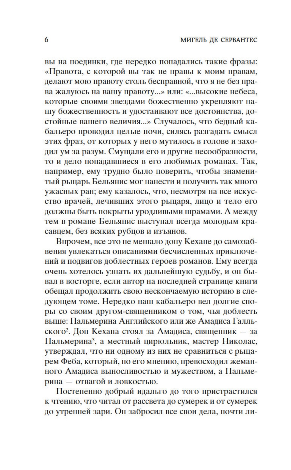 Что говорят нам сегодня имена Амадиса Галльского, Пальмерина Английского, Дона Бельяниса Греческого, Тиранта Белого? А ведь именно как пародия на романы об этих рыцарях создавался «Хитроумный идальго Дон Кихот Ламанчский» Мигеля де Сервантеса Сааведры (1547–1616). И пародия эта на века пережила пародируемый жанр. В 2002 г. согласно опросу, проведенному среди писателей Нобелевским институтом, «Дон Кихот» был признан лучшим романом за всю историю мировой литературы. Не случайно В. Набоков утверждал, что, «читая других романистов, с Дон Кихотом мы в каком-то смысле не расстанемся ни на минуту», узнавая его черты и в Джоне Джарндисе, и в Константине Левине, и даже в Эмме Бовари.
