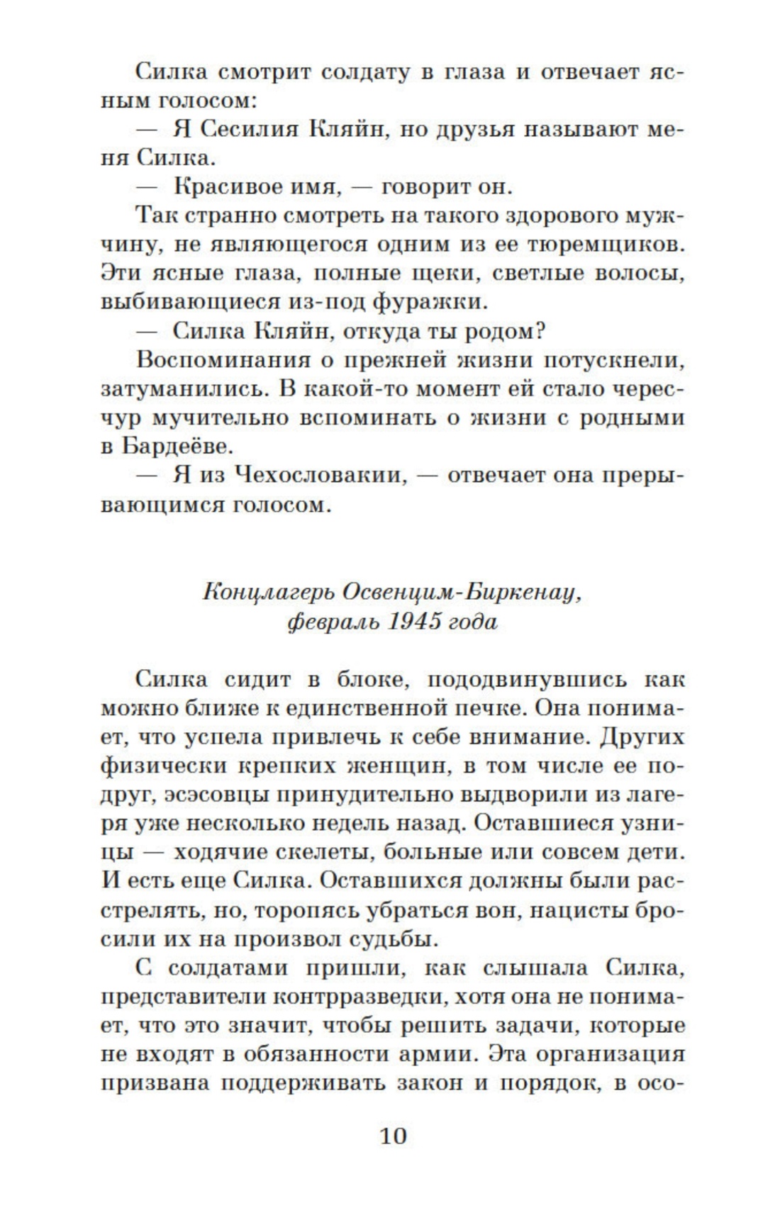 Силке было всего шестнадцать лет, когда она попала в концентрационный лагерь Освенцим-Биркенау в 1942 году. Красота девушки привлекает внимание старших офицеров лагеря, и Силку насильно отделяют от других женщин-заключенных. Она быстро узнает, что власть, даже нежелательная, равняется выживанию.