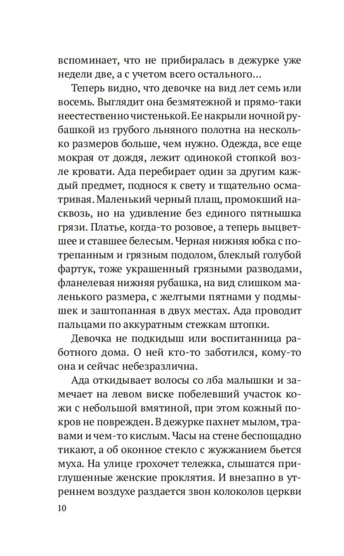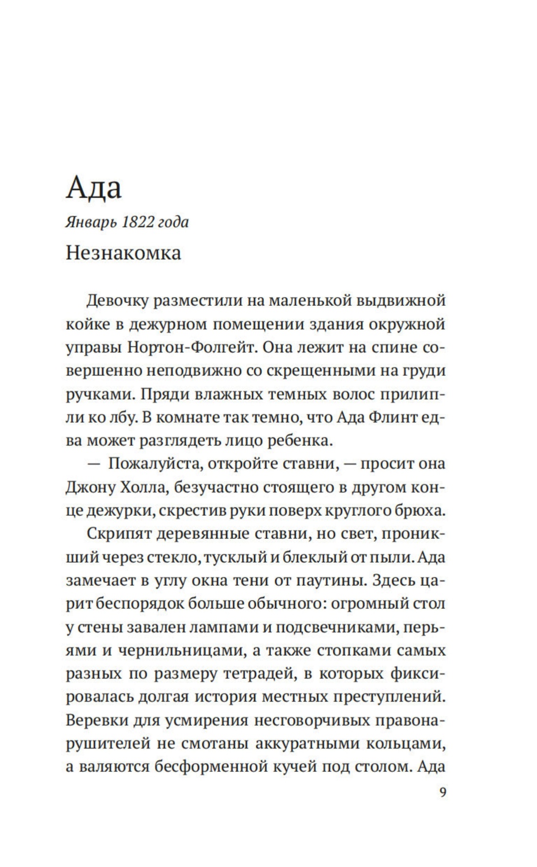 Лондон, начало XIX века. После внезапной смерти Уильяма Флинта, надзирателя округа Нортон-Фолгейт, его жена Ада остается одна с целым выводком детей. Из милости вдову назначают дознавателем при городской управе — работа сложная и невеселая, но Ада старается выполнять ее по совести. И когда на заброшенной конюшне обнаруживается труп восьмилетней девочки, Ада полна решимости выяснить, кем была малышка и кто ее родители. Однако загадки множатся, следствие то и дело заходит в тупик, и Ада вынуждена просить помощи у старого друга, художника Рафаэля Да Силвы…