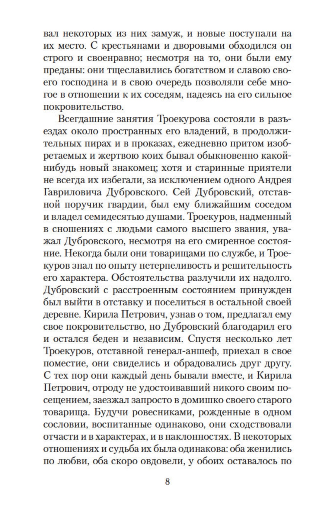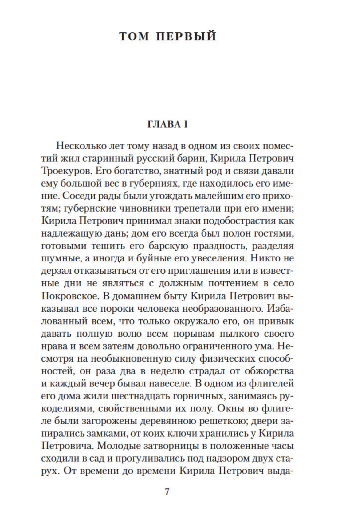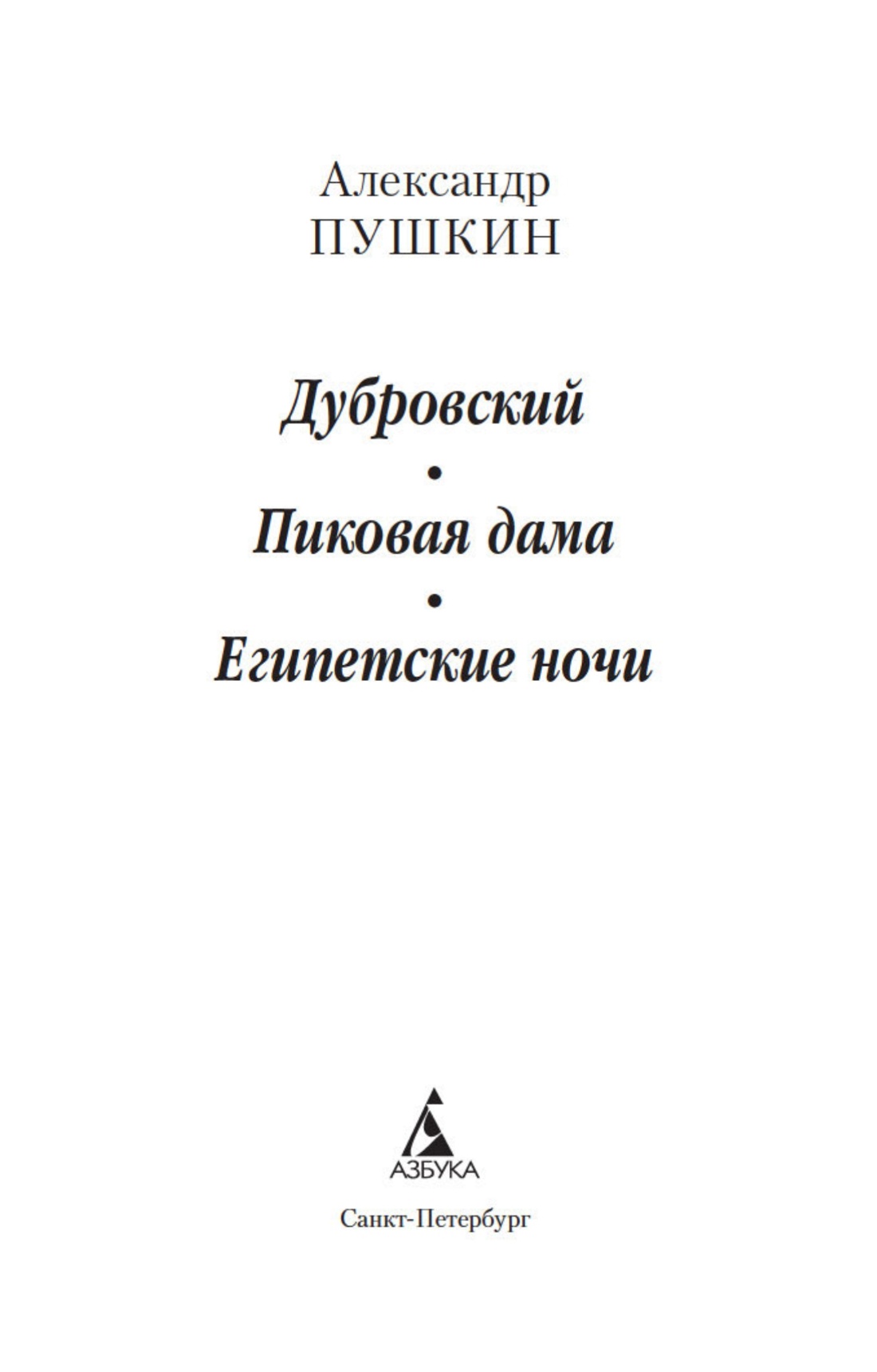 Ясность, точность, лаконизм, отказ от стилистических украшений — черты, которые, безусловно, отличают пушкинскую прозу; вместе с тем за внешней простотой скрыт настолько богатый смысловой потенциал, что литературоведы на протяжении вот уже почти двух веков не устают разгадывать шедевры Пушкина. К прозе, которую прежде называл «презренной», он обратился только в конце 1820-х годов, уже снискав известность и признание как поэт. Это обращение оказалось исключительно плодотворным — разнообразным в тематическом и жанровом отношении, богатым повествовательными приемами. «А разве есть русские романы?.. Пришли, батюшка, пожалуйста пришли», — в словах старой графини из «Пиковой дамы» явно звучит авторская ирония. Пушкинские опыты в прозе наметили новые пути для развития отечественной словесности. В настоящее издание вошли роман «Дубровский» (1832–1833), повести «Пиковая дама» (1833) и «Египетские ночи» (1835).