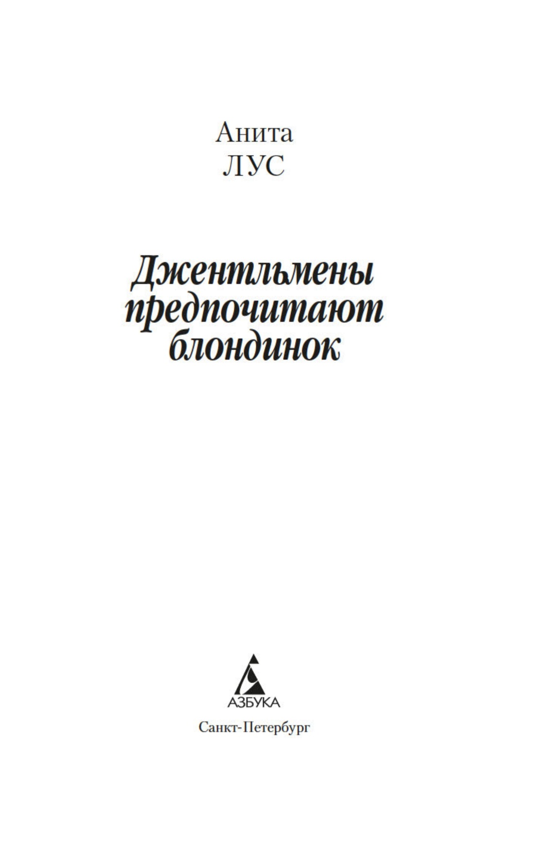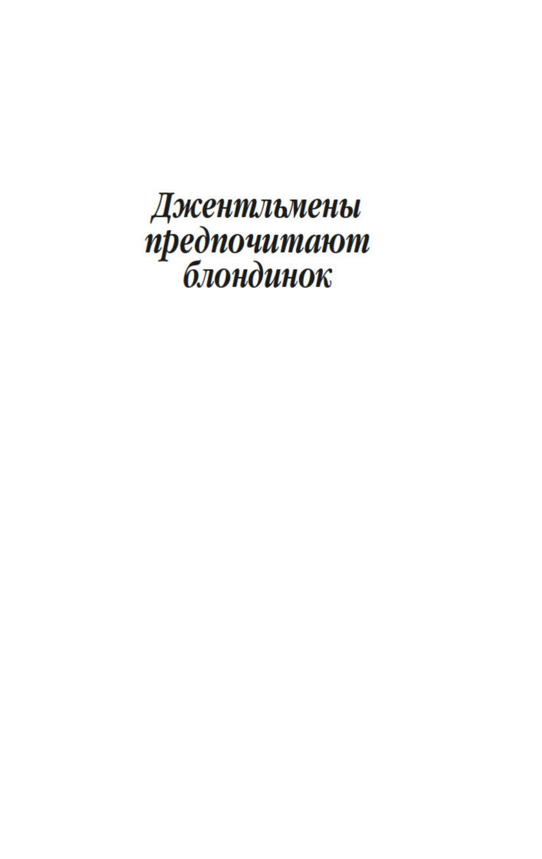 Для настоящего джентльмена встреча с блондинкой никогда не проходит даром — в прямом и переносном смысле слова! В этом знаменитая сценаристка и писательница Анита Лус (1888–1981) не раз убеждалась на собственном опыте: по ее признанию, себя она ассоциировала с брюнеткой Дороти — умудренной жизнью подругой очаровательной блондинки Лорелеи Ли. Замечательная рассказчица, Лус начала публиковать небольшие истории из жизни Лорелеи в «Harper’s Bazaar» в 1925 году, и благодаря их популярности тираж журнала вырос в четыре раза. Книга «Джентльмены предпочитают блондинок» и ее продолжение «Но женятся джентльмены на брюнетках» (1927) имели оглушительный успех, о чем свидетельствовало и появление музыкальной бродвейской версии произведения. А в 1953 году появился фильм с незабываемой Мэрилин Монро в главной роли. Ее героиня соткана из противоречий: она очаровательная и эгоистичная, глупая и рассудительная, откровенная и лживая — словом, настоящая блондинка…