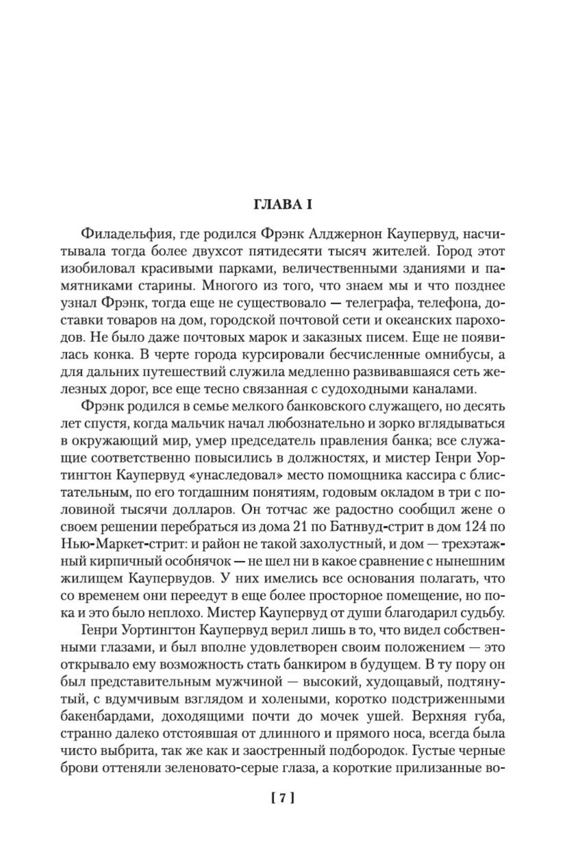 Теодор Драйзер — знаменитый американский писатель и общественный деятель. Его книги, такие как «Американская трагедия», «Сестра Кэрри» и другие, пользовались огромным успехом у читателей во всем мире и до сих пор вызывают самый живой интерес. Одним из центральных произведений Теодора Драйзера стала так называемая «Трилогия желания», рассказывающая о жизни бизнесмена Фрэнка Каупервуда, у которого был прототип в реальной жизни – крупный финансист миллионер Чарльз Йеркс. Написанные в увлекательной манере, романы «Финансист», «Титан» и «Стоик» содержат в себе все необходимые ингредиенты великолепной литературы: психологизм, умело закрученный сюжет, любовные страсти и яркую картину таинственного мира большого бизнеса.
