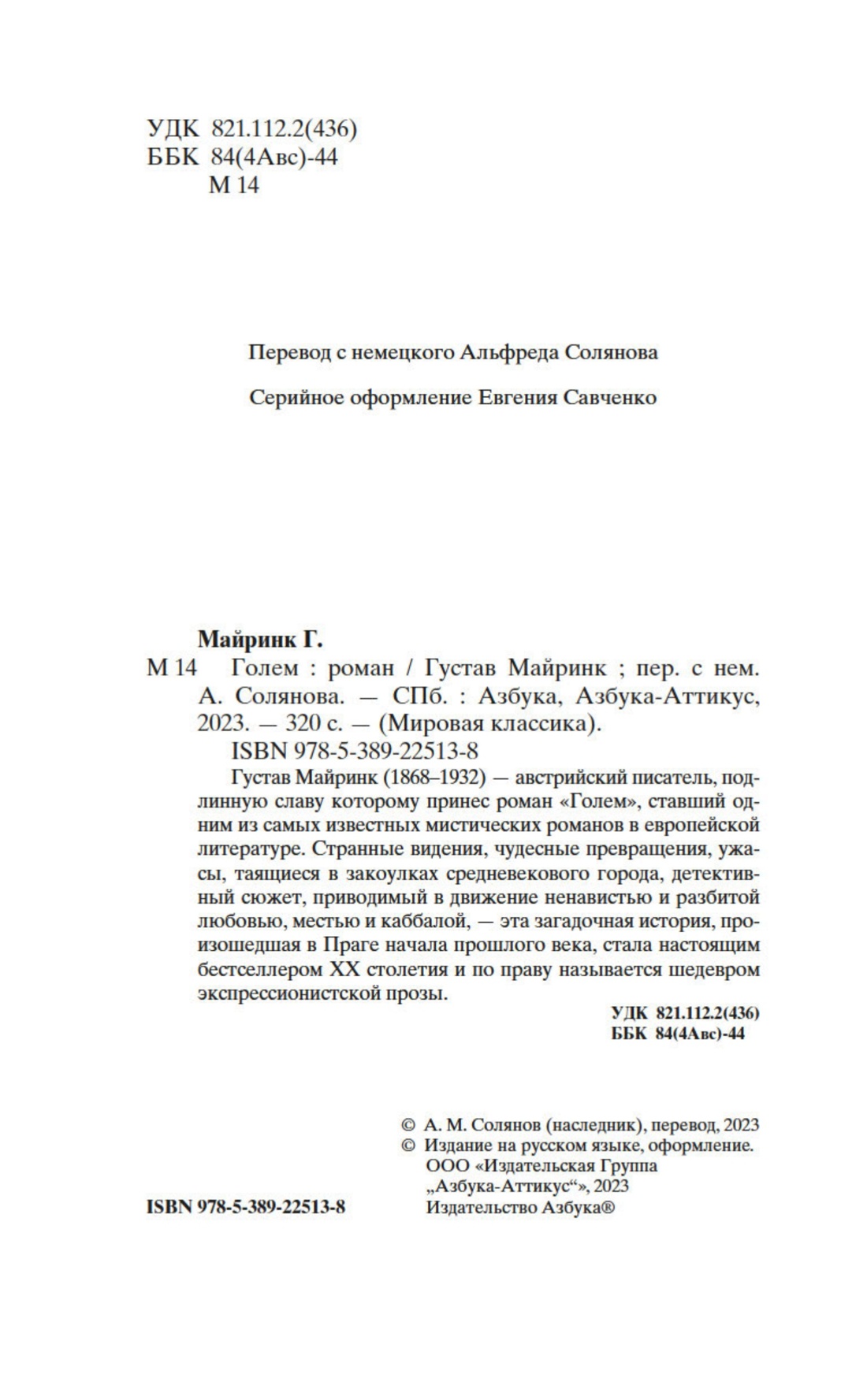 | Автор Густав Майринк | Страниц 320 | Обложка Твердый переплет |