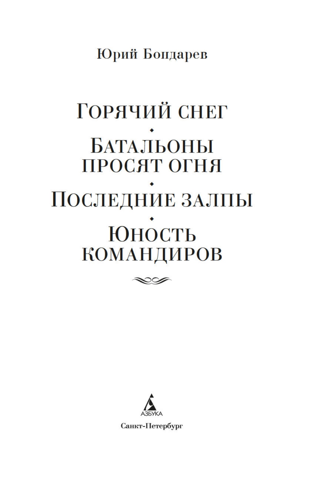 Юрий Васильевич Бондарев (1924–2020) прославился книгами о войне, написанными на основе собственного военного опыта. Для него Сталинградская битва 1942 года, описанная в романе «Горячий снег», или тяжелые бои при форсировании Днепра в 1943 году, о которых говорится в повести «Батальоны просят огня», — не просто страницы истории, а этапы собственной фронтовой биографии. В сборник включены также повести, написанные в 1950-х годах и посвященные событиям 1944–1945 годов: «Последние залпы» и «Юность командиров».