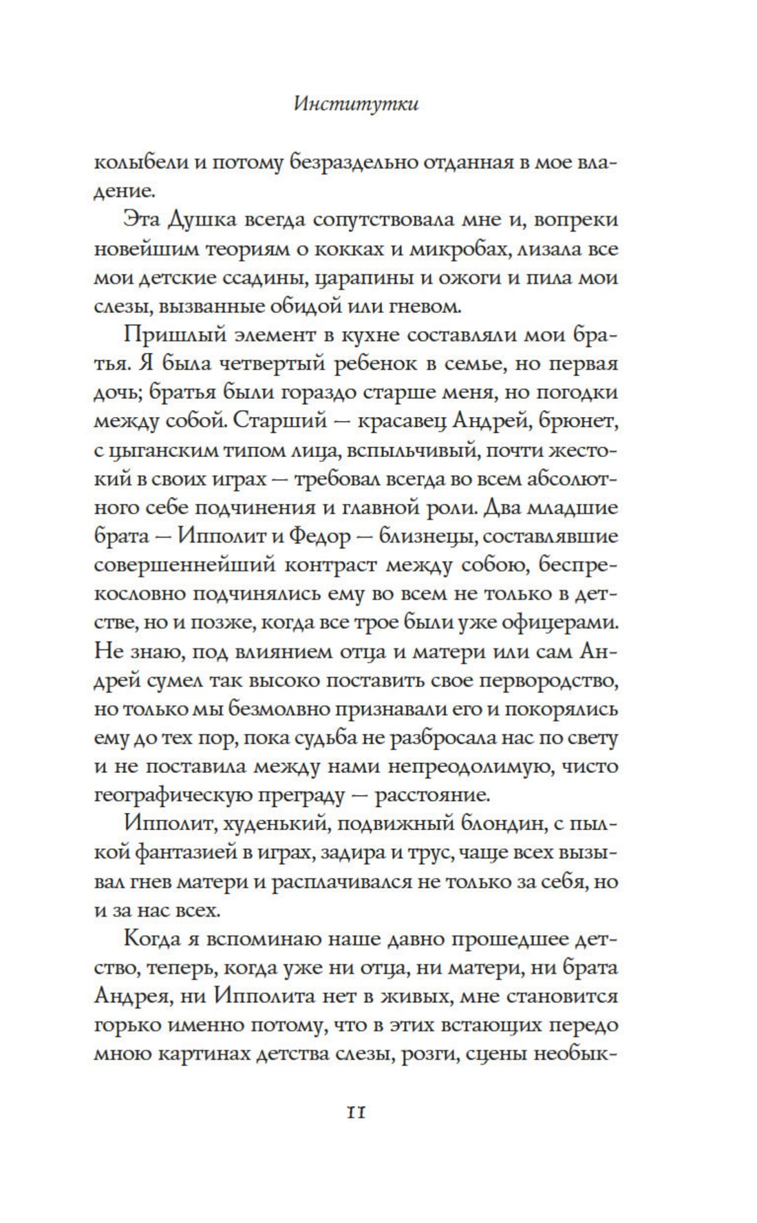 «Институтки» — очень искренняя книга о воспитании, взрослении, жизни девушек в закрытых учебных заведениях, о том, как любили, дружили, мечтали почти полтора века назад.