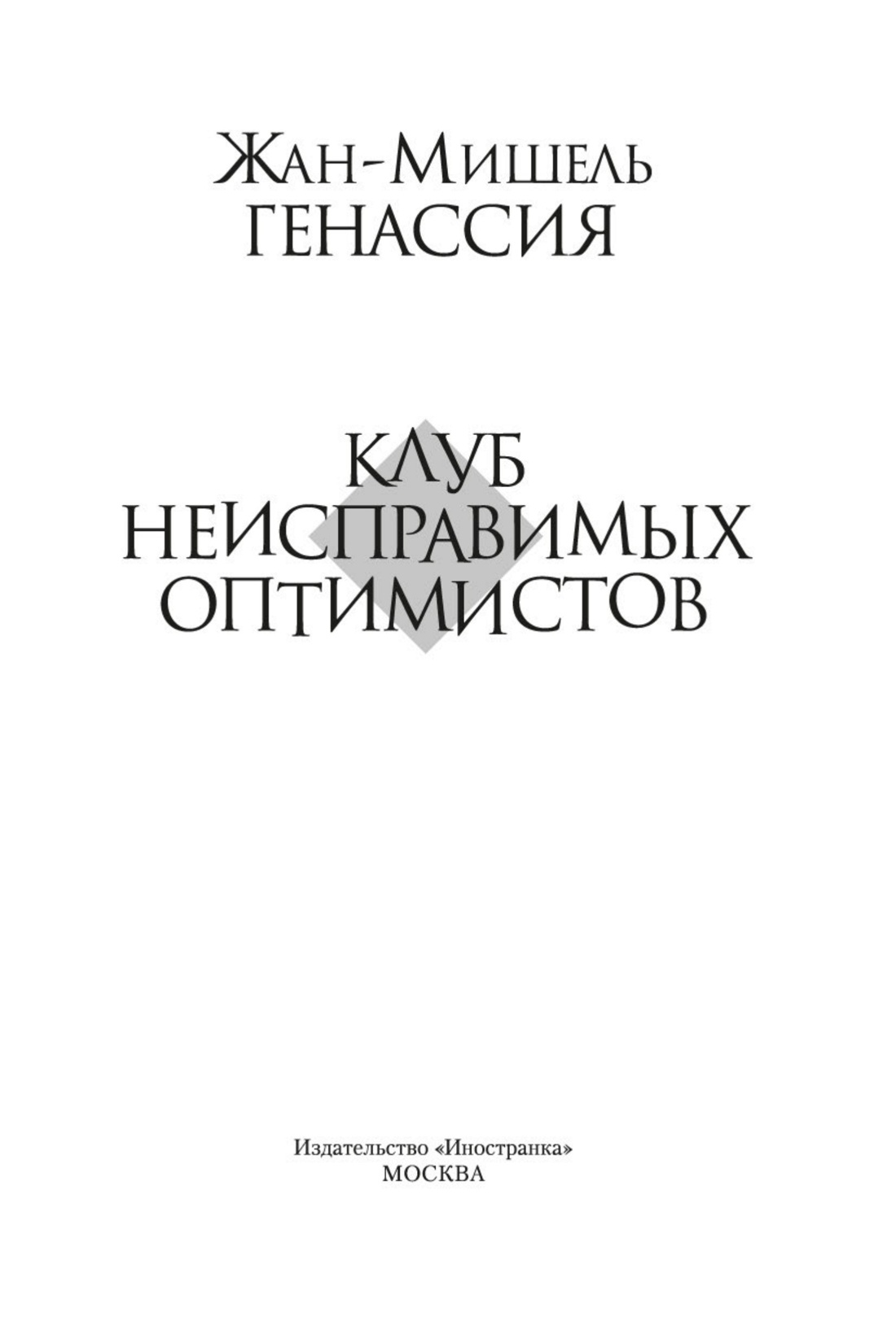 Жан-Мишель Генассия — писатель, стремительно набравший популярность в последние годы, автор романов «Клуб неисправимых оптимистов», «Удивительная жизнь Эрнесто Че» и «Обмани-Смерть». Критики по всему миру в один голос признали «Клуб неисправимых оптимистов» блестящей книгой, а французские лицеисты вручили автору Гонкуровскую премию.