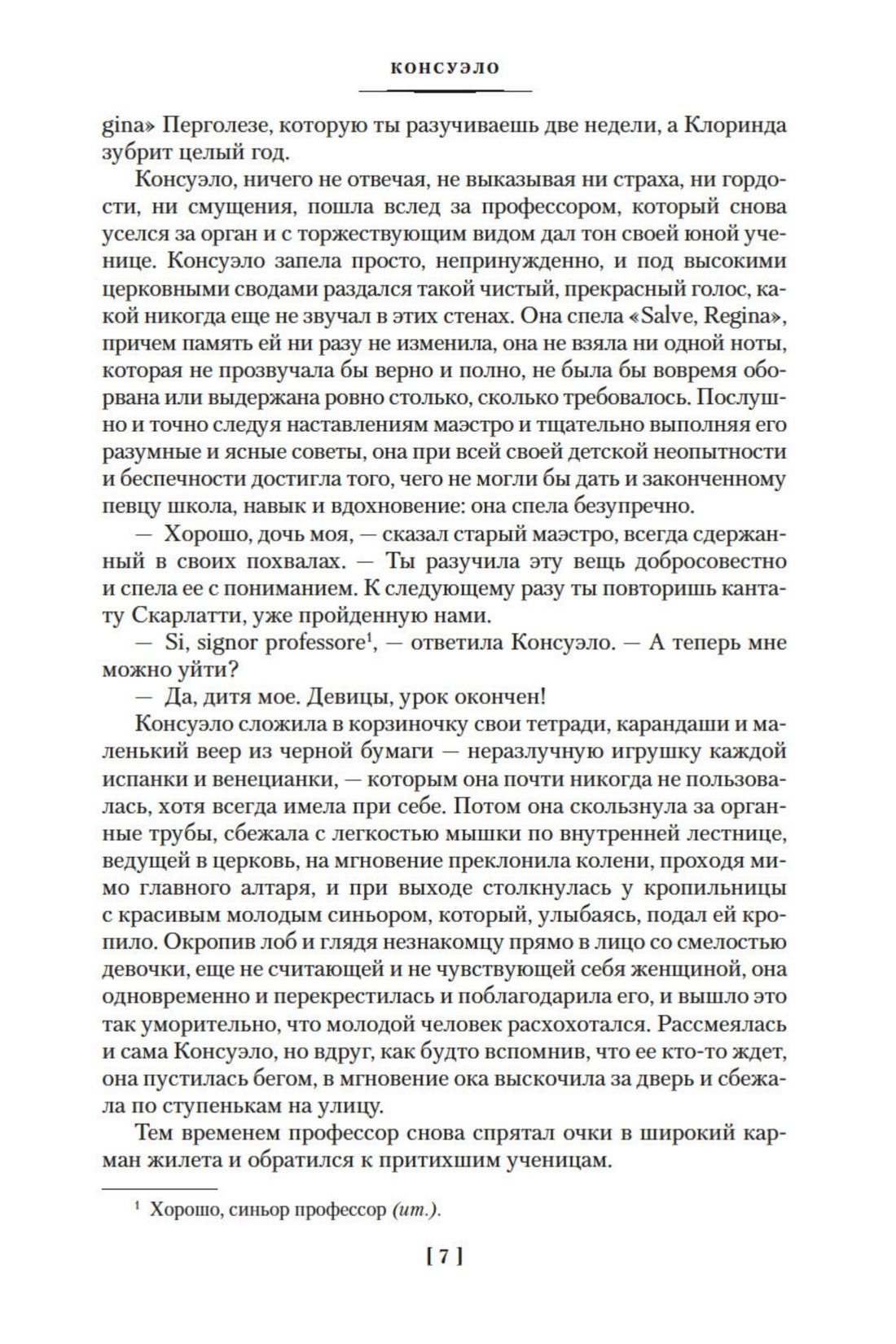 «Консуэло» — один из лучших романов Жорж Санд, написанный в пору творческой зрелости и, как многие произведения писательницы, вызвавший бурные споры и полярные оценки современников. В основе повествования — мотивы трагического столкновения артиста и общества, трудного выбора между карьерой, успехом и тихой семейной заводью. Прототипом главной героини романа послужила знаменитая испано-французская оперная певица Полина Виардо, бывшая музой И. С. Тургенева.