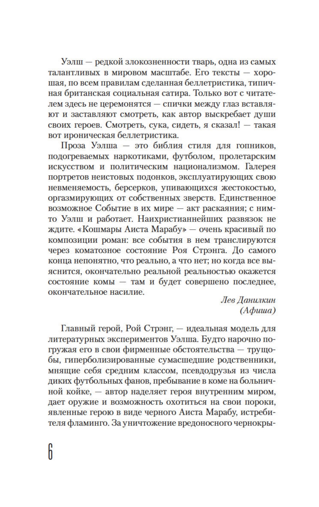 Уэлш — ключевая фигура современной британской прозы, мастер естественного письма и ниспровергатель всяческих условностей. Вашему вниманию предлагается долгожданное переиздание второго романа «неоспоримого лидера в новой волне современной британской словесности» (Observer), который «неизменно доказывает, что литература — лучший наркотик» (Spin).