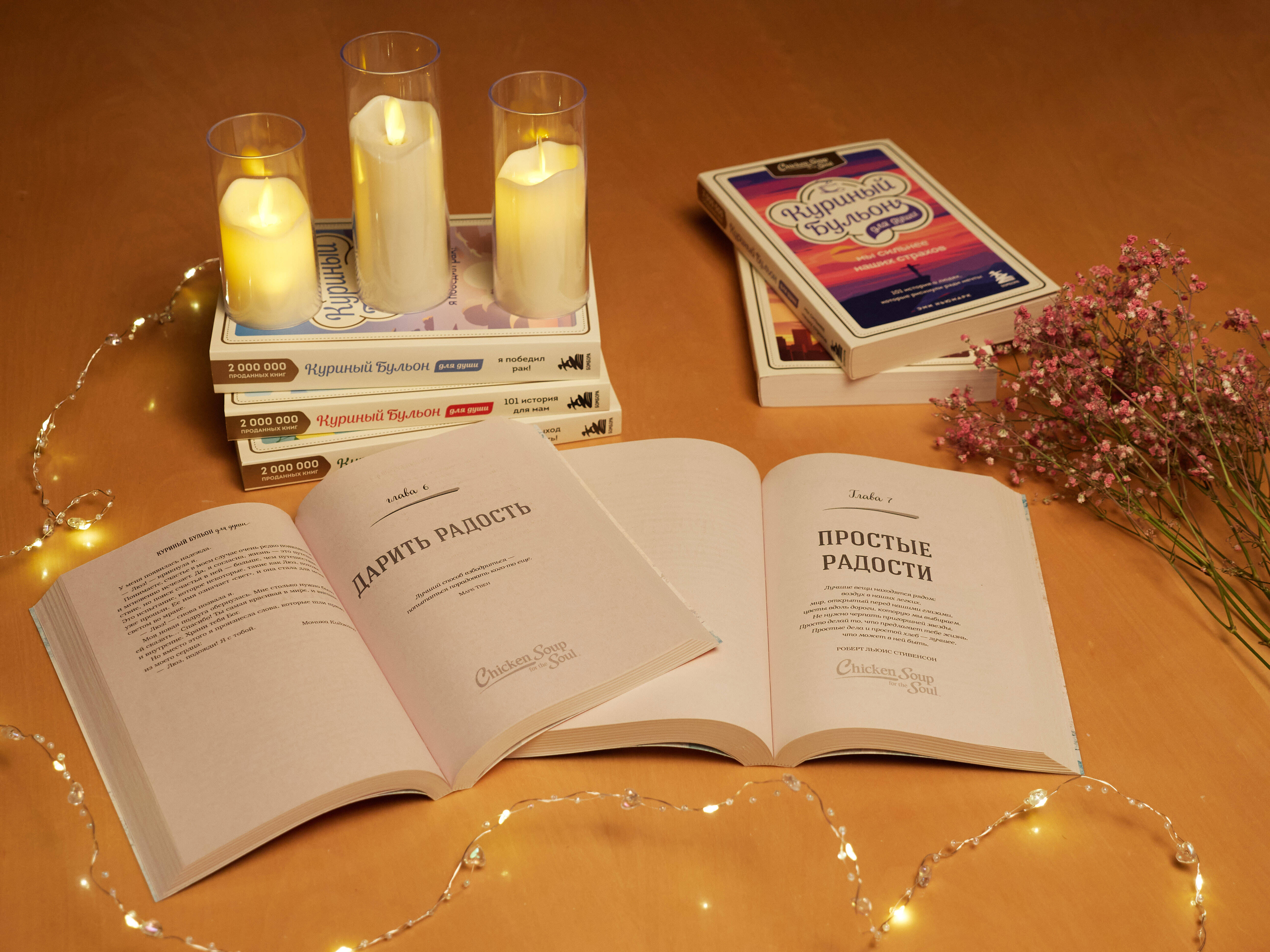 Для каждого из 2 000 000, кто купил «Куриный бульон», для каждого нового друга, кто держит его в руках впервые, — это юбилейное оформление и наша огромная благодарность за ваш выбор.