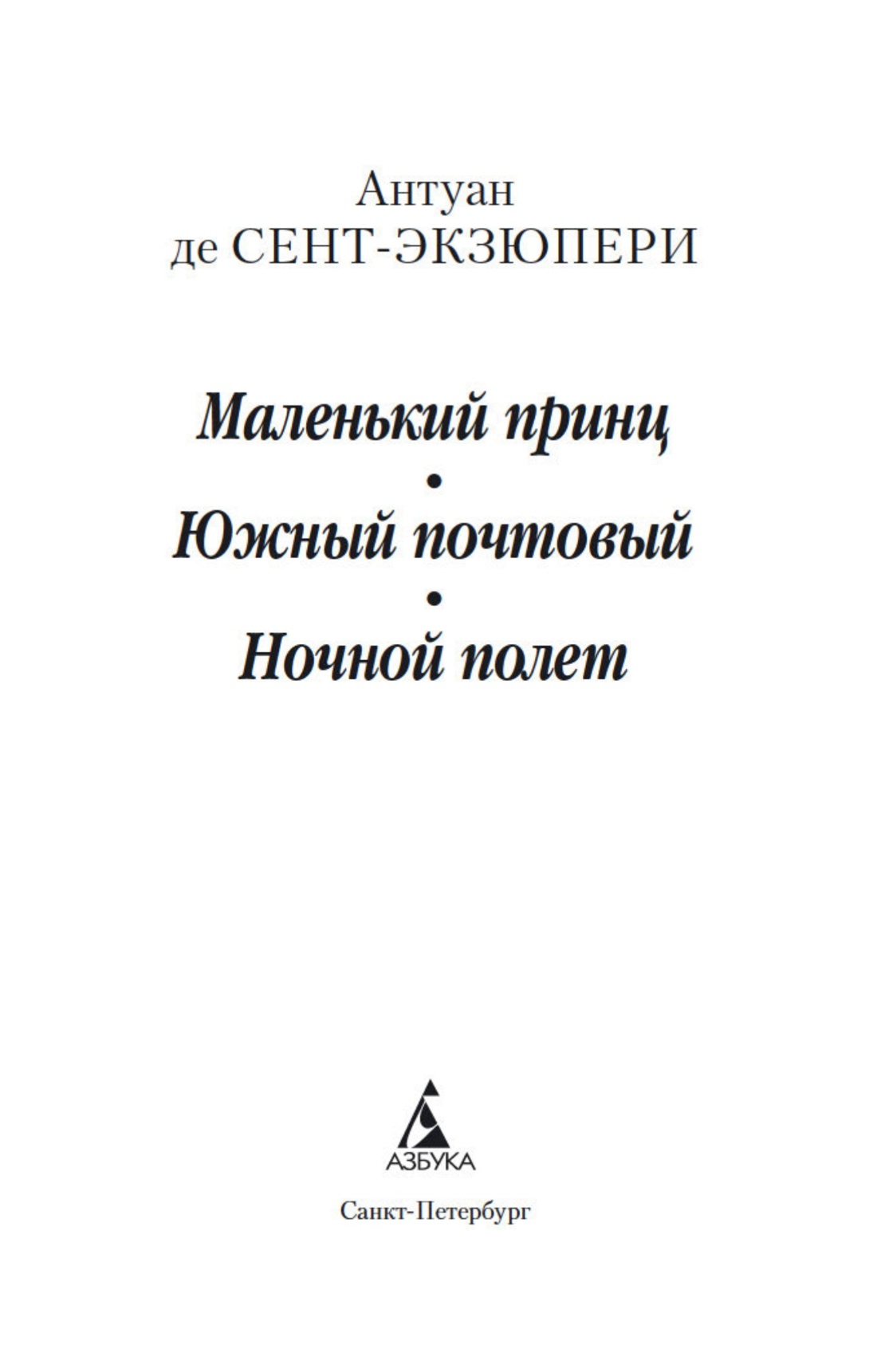 В настоящее издание, помимо «Маленького принца», вошли также две повести Экзюпери о жизни военного летчика: «Южный почтовый» и «Ночной полет».