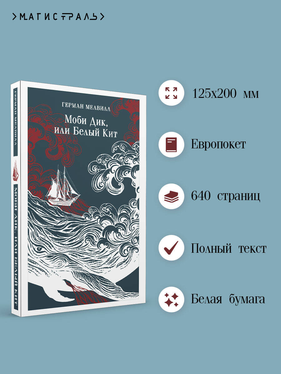 «Моби Дик, или Белый Кит» — один из самых великих американских романов и аллегория борьбы человека с мировым злом. Автор называл книгу романтическим приключением, основанном на его двухлетнем опыте гарпунера и на одной из тех диких легенд, что ходят между китобоями южных морей. В основе сюжета лежит реальная история. Эрнест Хемингуэй и Уильям Фолкнер провозгласили роман литературной иконой, а в США до сих пор царит настоящий культ Мелвилла.