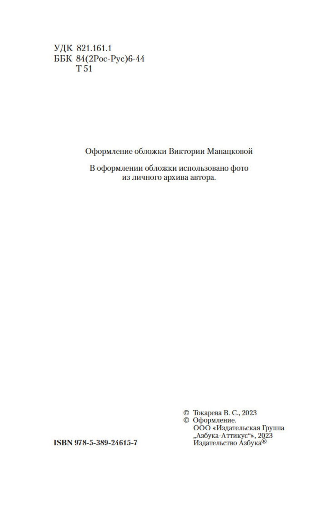 | Вес (кг) 0.288 | Серия Виктория Токарева. Новое оформление | ISBN 978-5-389-24615-7 |