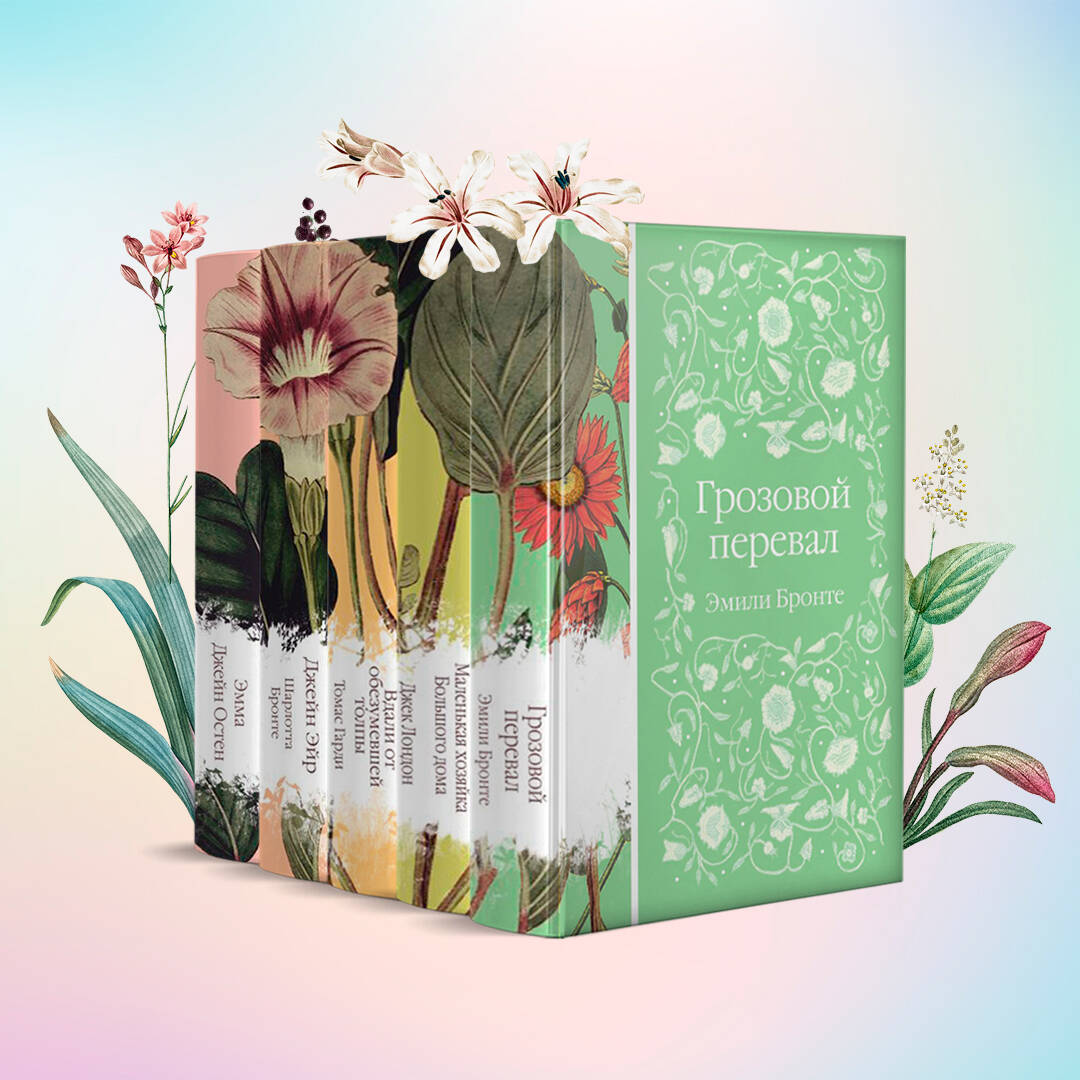 В комплект вошли «Джейн Эйр», «Вдали от обезумевшей толпы», «Маленькая хозяйка большого дома», «Грозовой перевал» и «Маленькие женщины» — пять классических женских романов, которые приятно читать и приятно дарить.