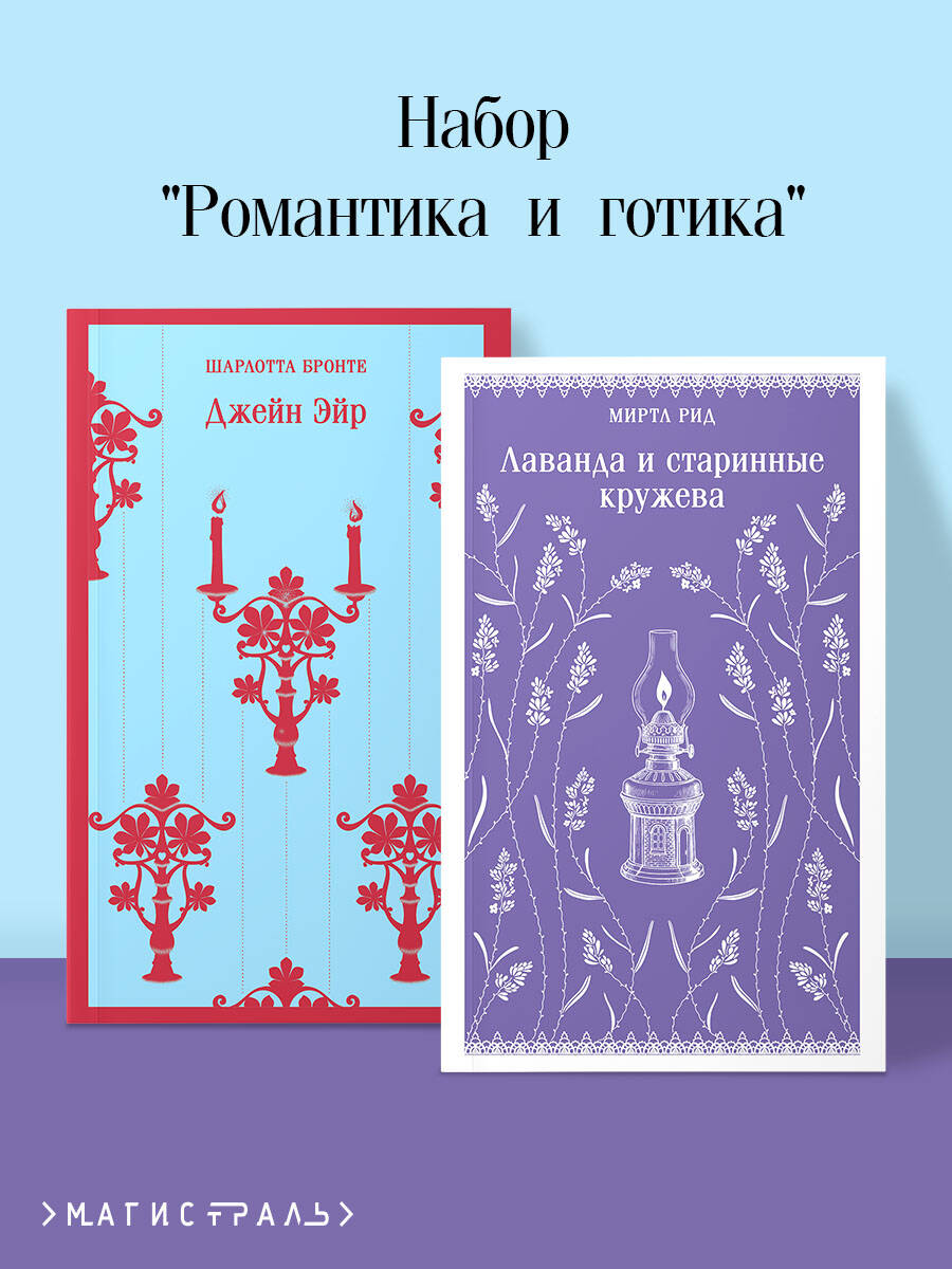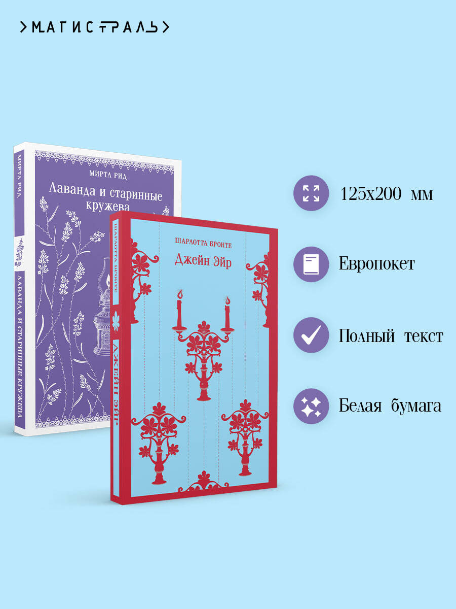 Комплект, объединяющий две незабываемые истории о любви, тайнах и поисках своего пути: «Лаванда и старинные кружева» Миртл Рид и «Джейн Эйр» Шарлотты Бронте. Этот комплект — настоящий подарок для поклонников готики сестёр Бронте, мистических историй Дафны дю Морье, тёплых романов Люси Мод Монтгомери и загадочной атмосферы книг Дианы Сеттерфилд. Здесь переплетаются тайна, нежность и надежда, напоминая нам, что чудеса случаются, когда мы верим в любовь и верность.