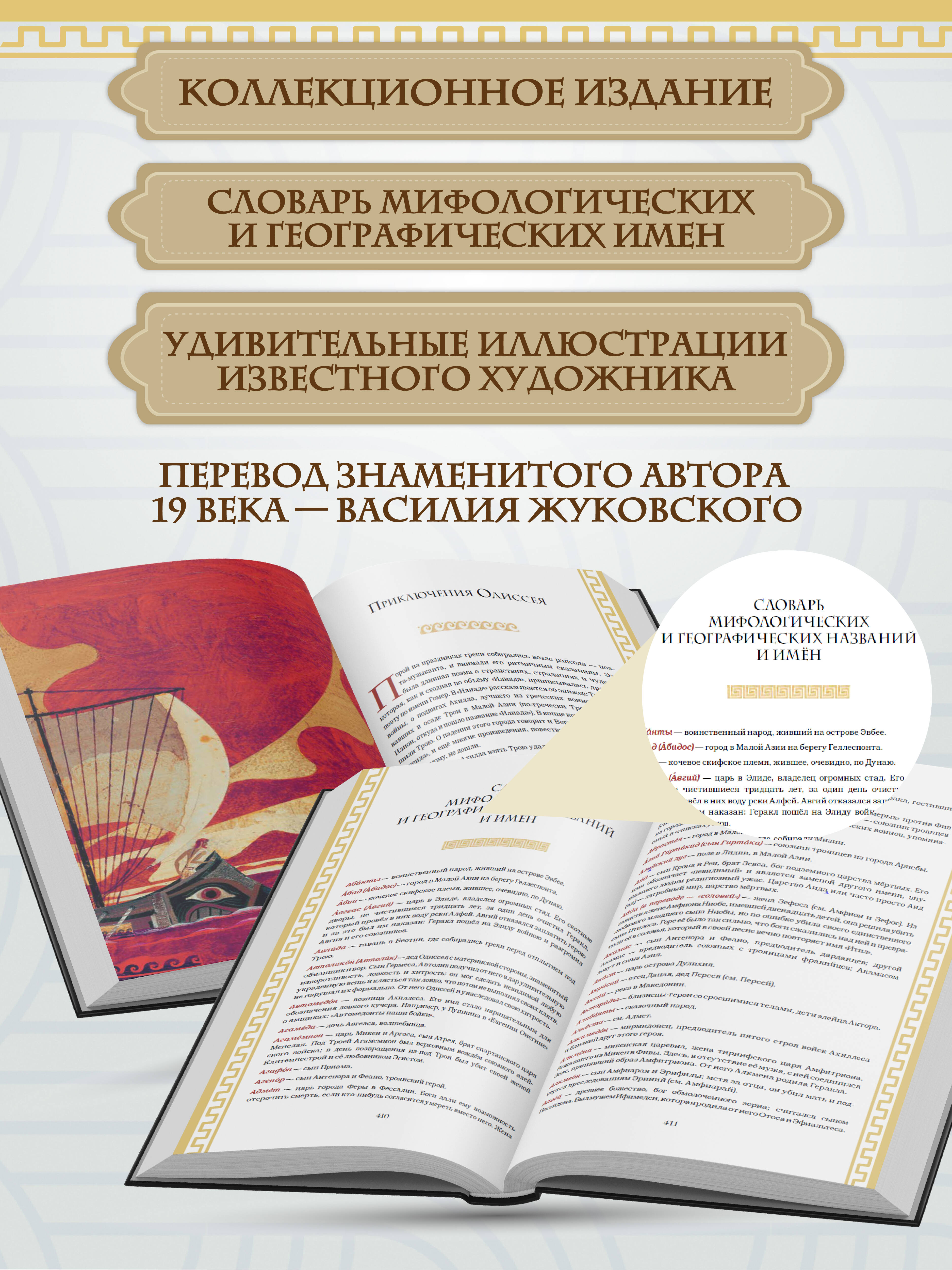 Удивительные работы испанского художника Пепы Монтсеррата добавляют яркие детали и образность к захватывающим событиям гомеровского текста. Классический перевод на русский язык выполнен Василием Жуковским.