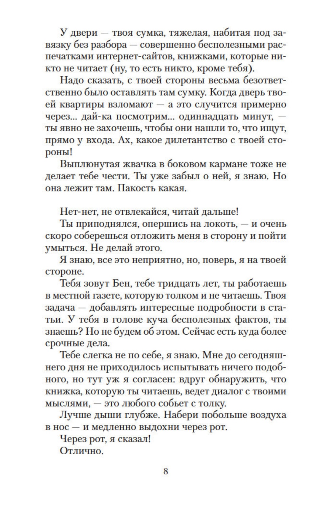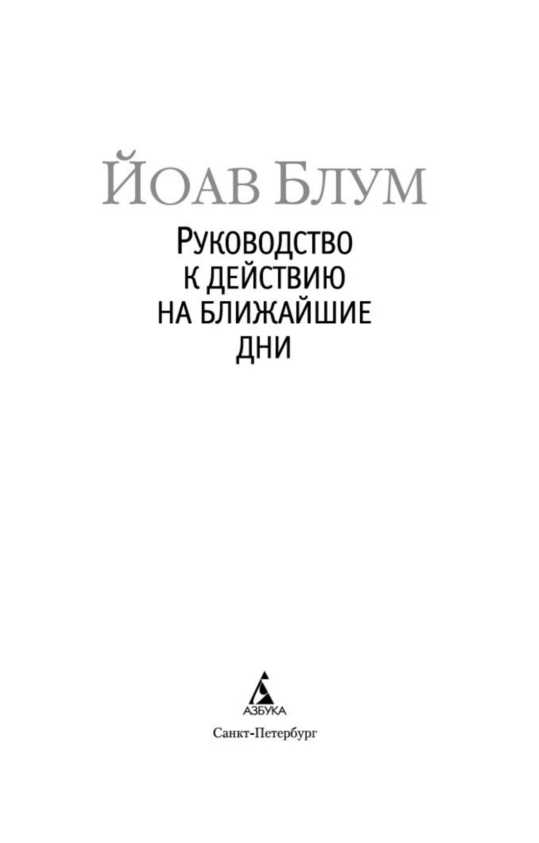 «Руководство к действию на ближайшие дни» молодого израильского писателя Йоава Блума каждому, любому не поможет. Оно пригодится лишь неудачнику Бену Шварцману, бывшему библиотекарю на три четверти ставки, который к тому же совсем не пьет. Странные советы дает ему книга, запугивает и поддерживает, и среди прочего рекомендует к употреблению крепкие спиртные напитки особых достоинств. Если он этим наставлениям последует — что будет? Проснется ли он просто с тяжелой от похмелья головой, или, может, совсем другим человеком?.. Вдруг «Руководство» поможет ему защититься от агрессивного мира? Или, напротив, в ближайшие дни Бен поймет условность границ между силой и слабостью, опытом и невинностью, и растворится в этом самом мире? И справится ли со всем этим Бен Шварцман?..