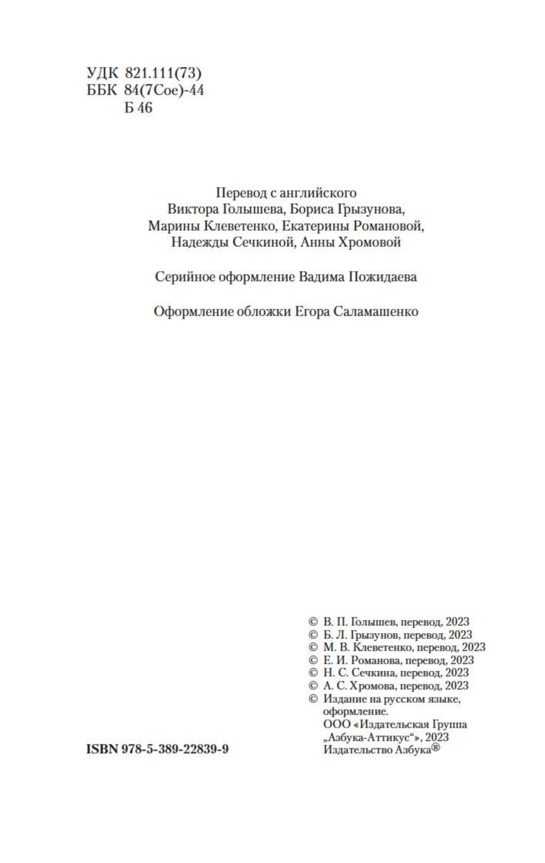 | Вес (кг) 0.24 | Серия Азбука-классика (pocket-book) | ISBN 978-5-389-22839-9 |