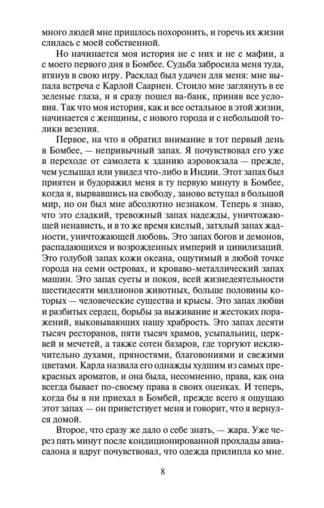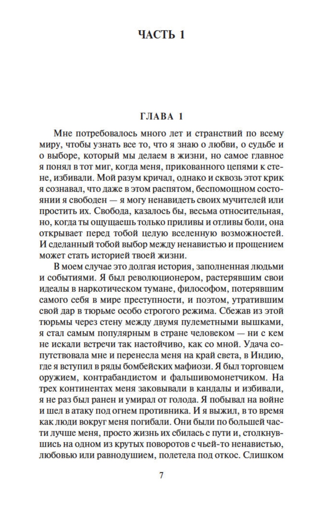 Представляем читателю один из самых поразительных романов начала XXI века. Эта преломленная в художественной форме исповедь человека, который сумел выбраться из бездны и уцелеть, протаранила все списки бестселлеров и заслужила восторженные сравнения с произведениями лучших писателей Нового времени, от Мелвилла до Хемингуэя. Подобно автору, герой этого романа много лет скрывался от закона. Лишенный после развода с женой родительских прав, он пристрастился к наркотикам, совершил ряд ограблений и был приговорен австралийским судом к девятнадцати годам заключения. Бежав на второй год из тюрьмы строгого режима, он добрался до Бомбея, где был фальшивомонетчиком и контрабандистом, торговал оружием и участвовал в разборках индийской мафии, а также нашел свою настоящую любовь, чтобы вновь потерять ее, чтобы снова найти...