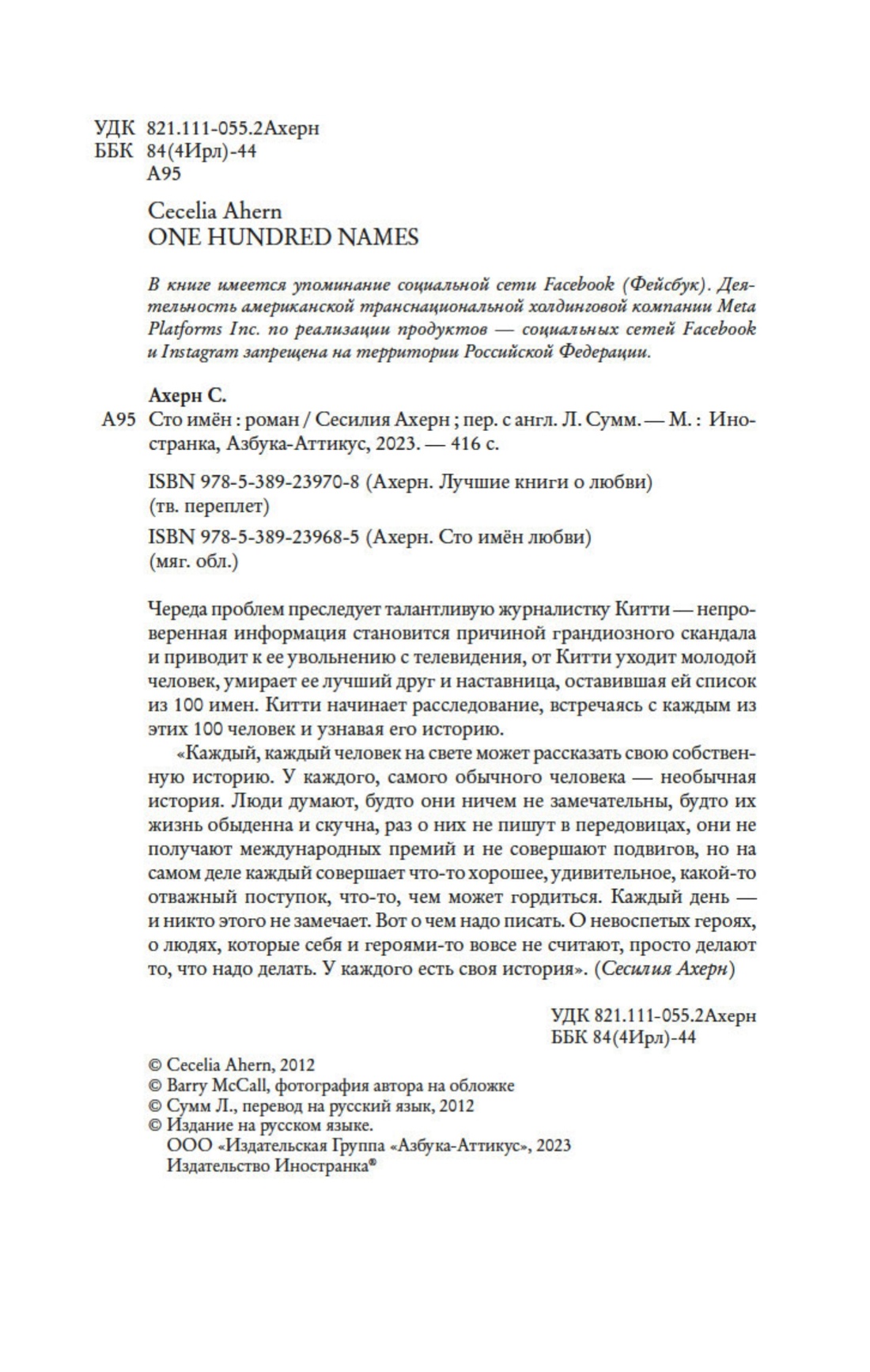 | Вес (кг) 0.397 | Серия Ахерн. Лучшие книги о любви | ISBN 978-5-389-23970-8 |
