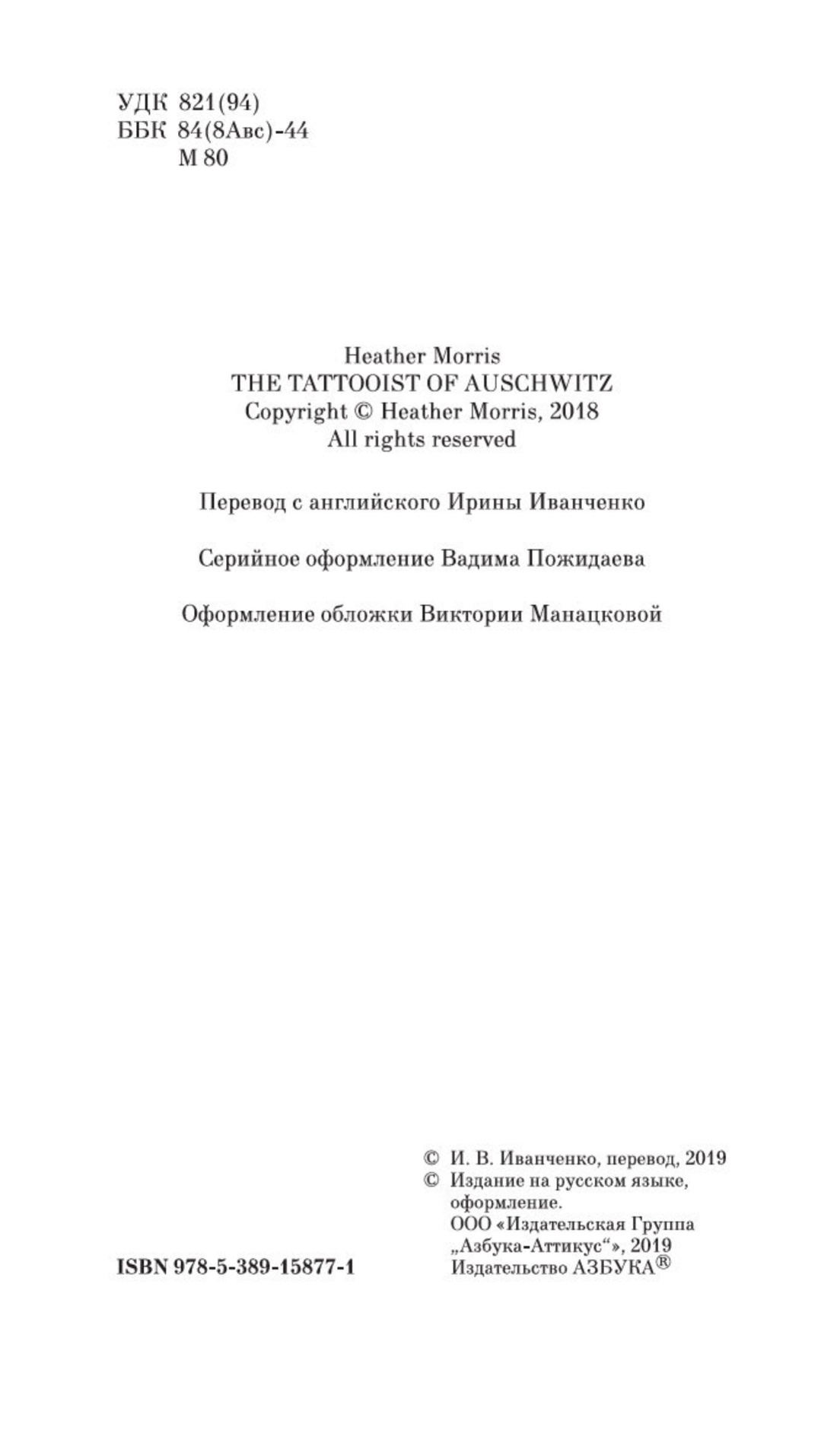 Основанный на реальных событиях жизни Людвига (Лале) Соколова, роман Хезер Моррис является свидетельством человеческого духа и силы любви, способной расцветать даже в самых темных местах. И трудно представить более темное место, чем концентрационный лагерь Освенцим/Биркенау.