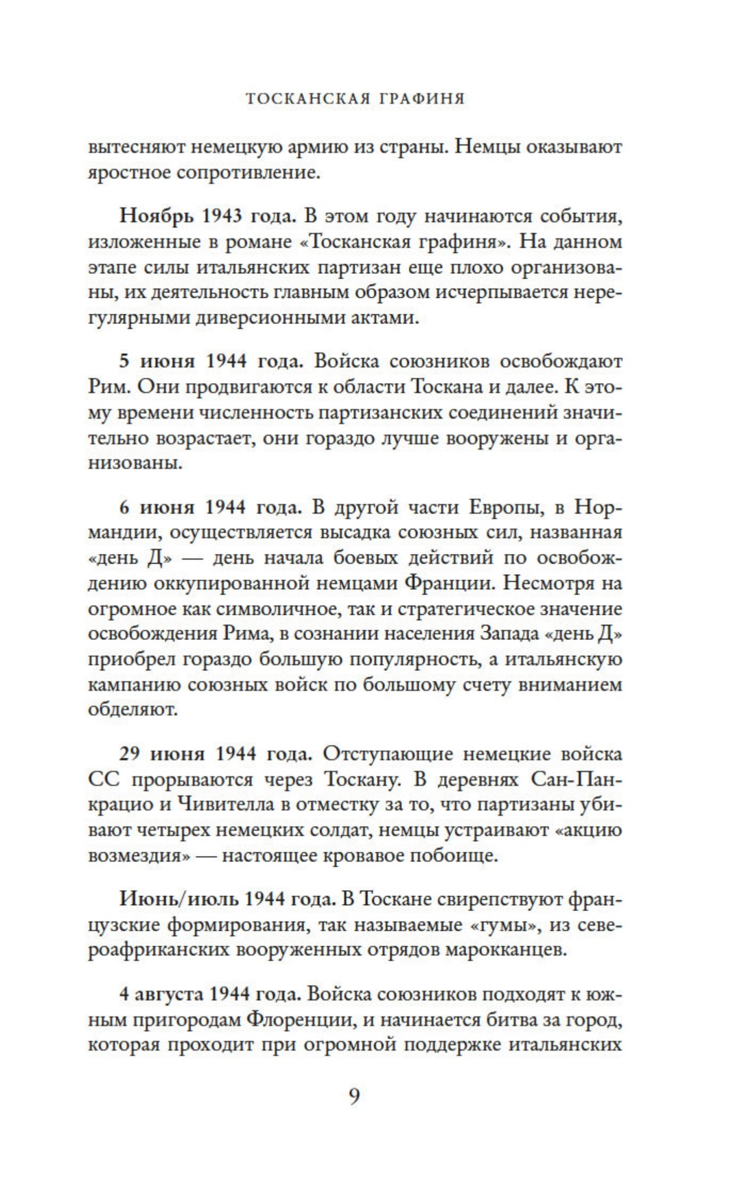 Переломный момент в ходе Второй мировой. Начиная с 1943 года силы антифашистской коалиции постепенно вытесняют гитлеровцев из Италии, однако те неохотно сдают свои позиции, угрожая мирным жителям карательными операциями за любое содействие Сопротивлению или войскам союзников. Солдаты немецкой части, отступающей через Тоскану, размещаются на постой в деревне Кастелло, рядом с виллой графини Софии де Корси, и если нацисты узнают о том, что спрятано на вилле и кто здесь скрывается, графине и ее близким несдобровать. София понимает, что без чужой помощи ей не удастся сохранить свои тайны от врагов. И хотя в Италии военного времени даже хорошо знакомый человек может оказаться предателем, графиня решает довериться незваной гостье — итало-американке Максин, которая приехала в Кастелло с важным заданием...