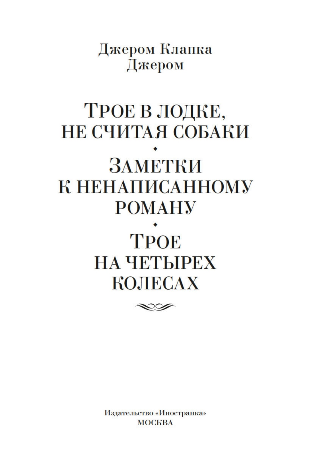 Летом 1888 года английский писатель Джером К. Джером, только что вступивший в законный брак, провел медовый месяц на Темзе. Из путевых впечатлений и воспоминаний этой счастливой поры родилась идея одной из самых смешных книг в мировой литературе. Приключения незадачливых, добродушных англичан, путешествующих по Темзе, о которых Джером написал в романе «Трое в лодке, не считая собаки» и в его продолжении «Трое на четырех колесах» (а также созданный между ними небольшой шедевр «Заметки к ненаписанному роману», в котором узнаются все те же незабываемые герои), стали хорошо известны даже в самых отдаленных уголках планеты. С неизменной любовью читатели относятся к произведениям Джерома и в России, где его замечательный талант оценили едва ли не выше, чем на родине писателя. А благодаря блистательной экранизации романа, осуществленной в 1979 году, главные роли в которой сыграли Андрей Миронов, Александр Ширвиндт и Михаил Державин, Джером стал нам еще ближе и понятнее.