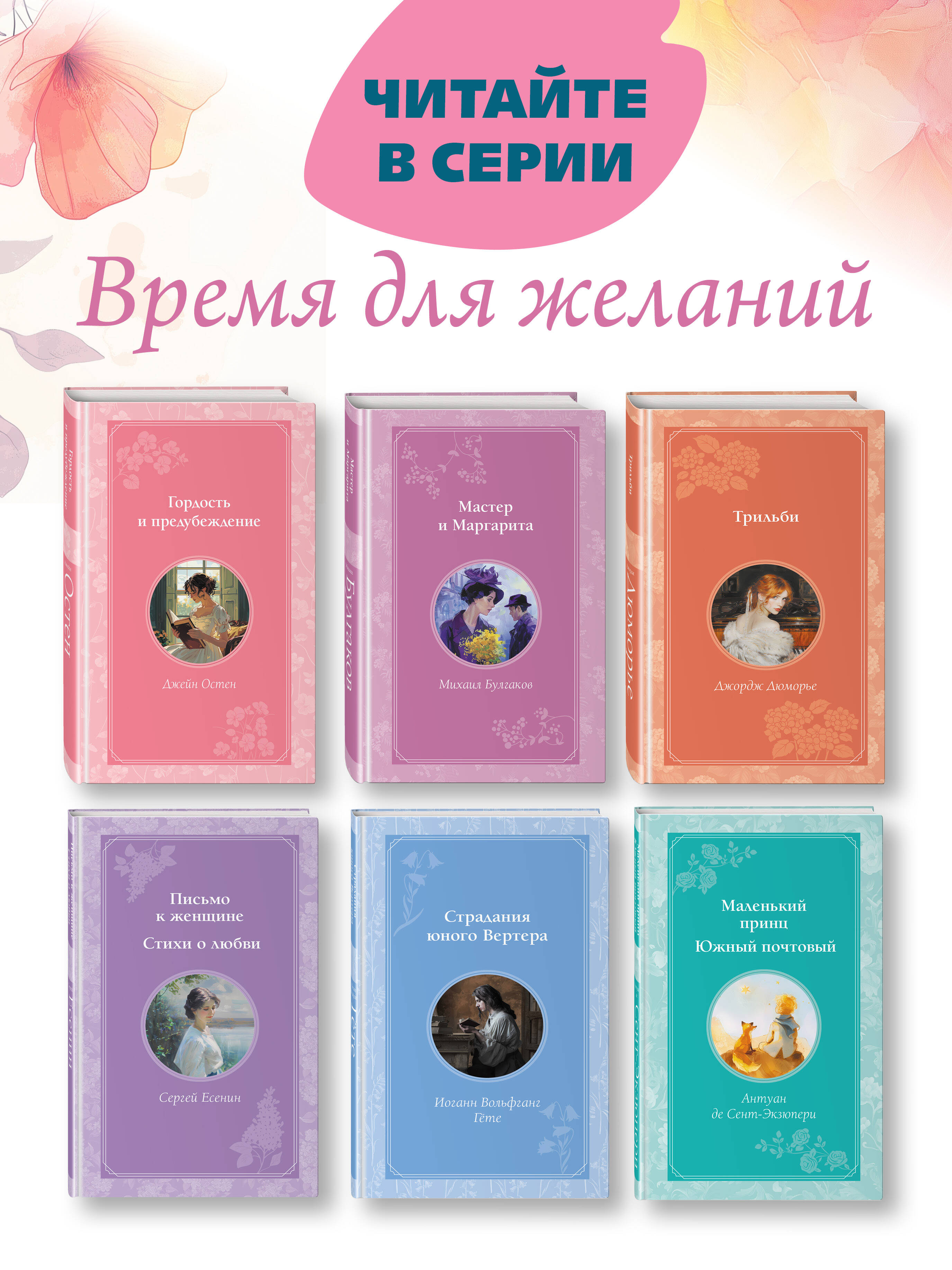 Состав серии порадует любителей искренних и глубоко волнующих романов. В серию вошли лучшие романтические произведения мировой литературы в переводах признанных мастеров. Это «Гордость и предубеждение», «Маленький принц», «Страдания юного Вертера», «Портрет Дориана Грея», «Великий Гэтсби», а также жемчужины русской классики — «Мастер и Маргарита», любовная лирика Сергея Есенина и Александра Пушкина. Эти книги проникают в глубины человеческой души и исследуют каждое движение трепещущего сердца.