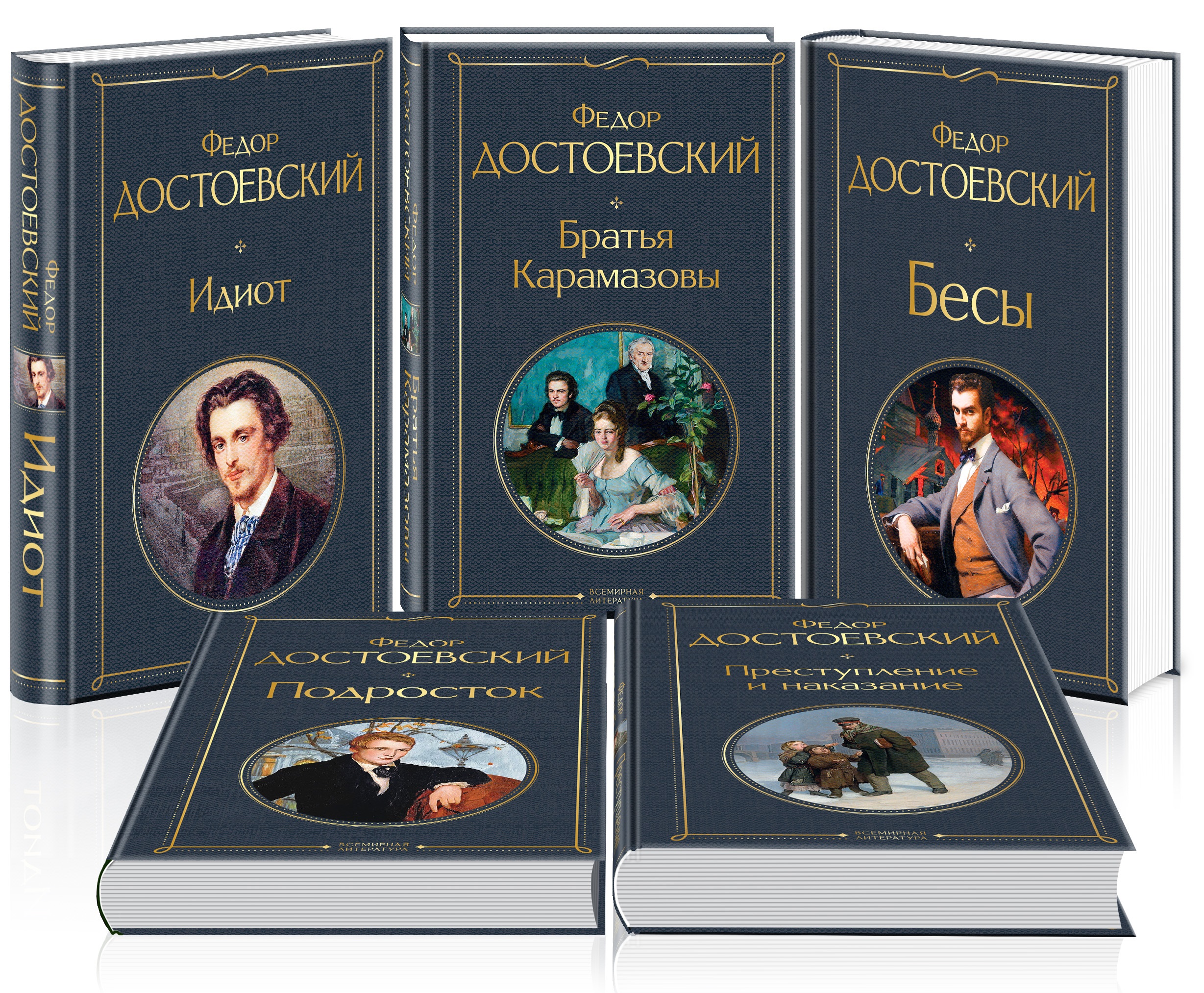 Великое пятикнижие Ф. М. Достоевского (набор из 5 книг: "Преступление и наказание", “Братья Карамазовы”, “Идиот”, “Подросток”, "Бесы")