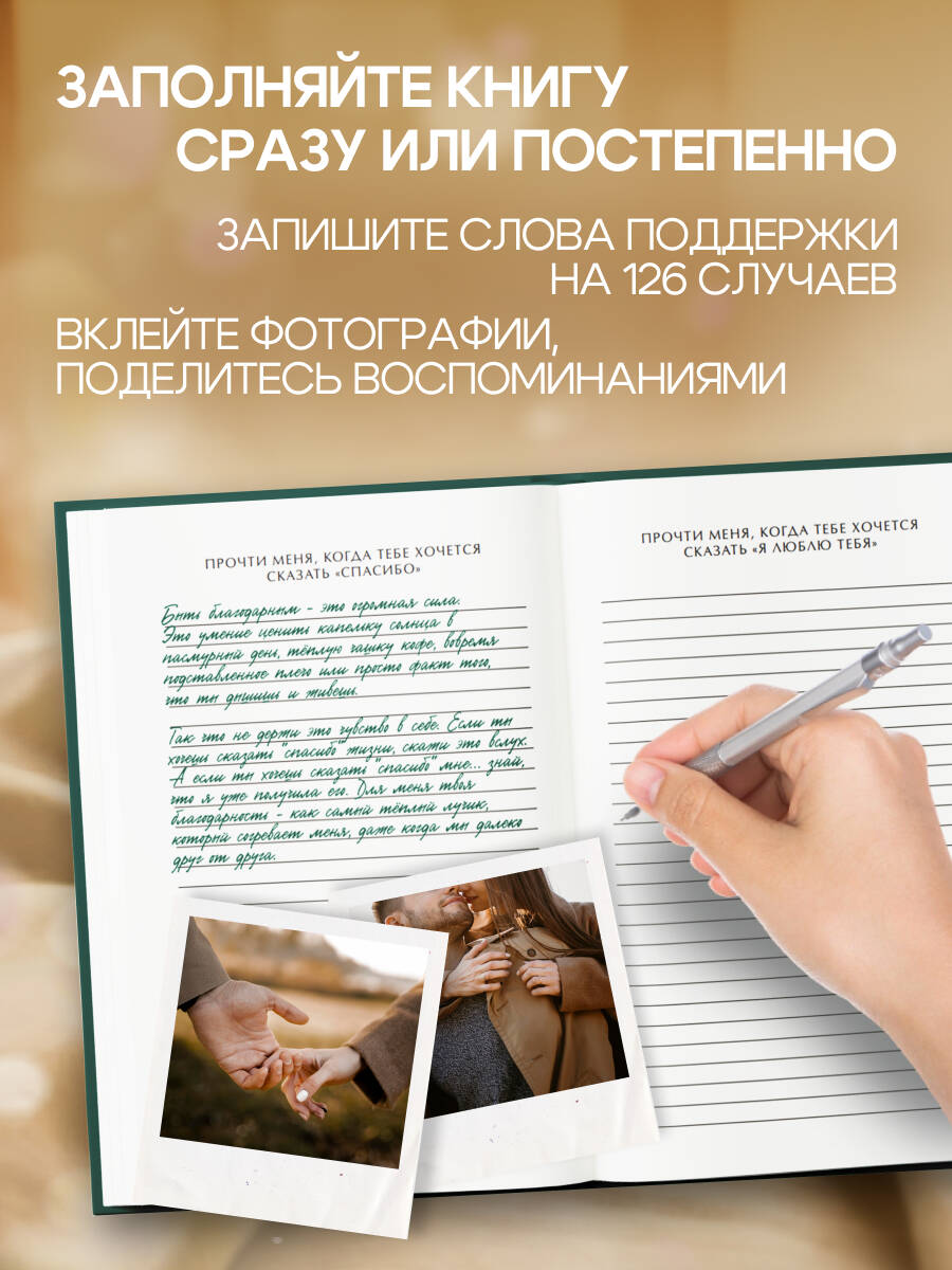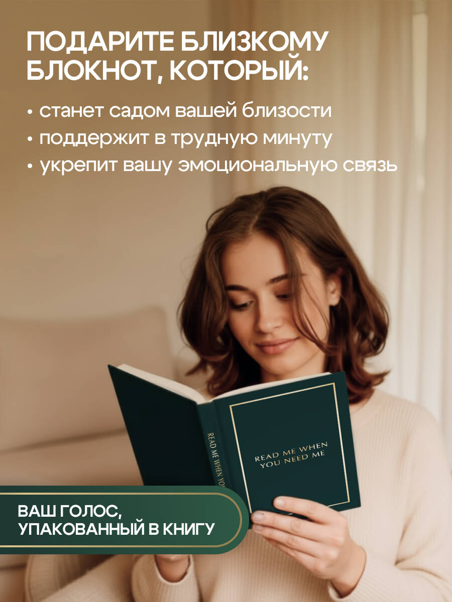 Когда он откроет нужную страницу — в радости, сомнении, скуке или разлуке — он прочитает именно ваши слова, а не шаблонный текст. Это создает ощущение, что вы рядом, даже на другом конце света.