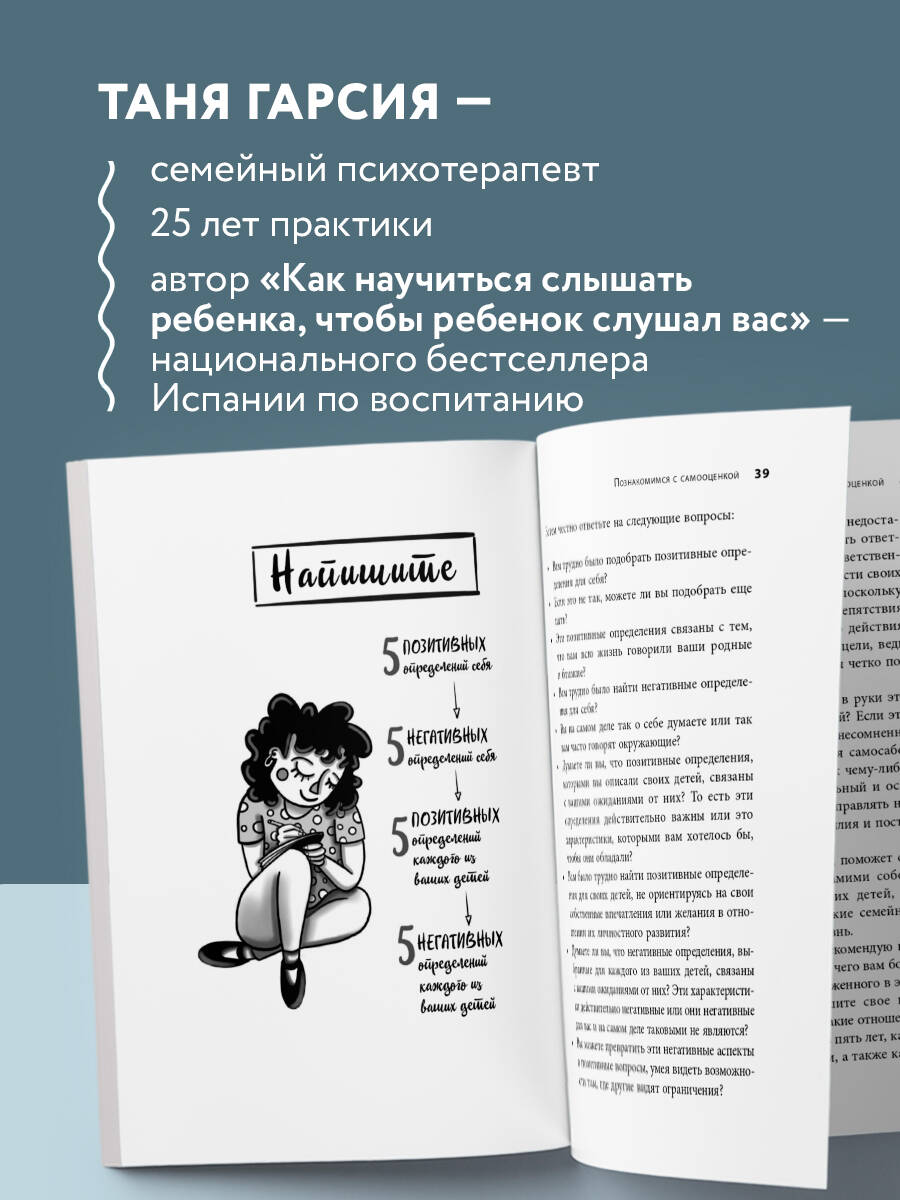 Здоровая самооценка — ключ к жизни в гармонии с собой, полной любви, принятия и уважения. То, как в детстве к нам относились родители, определит, насколько мы сможем полюбить себя, будучи уже взрослыми. Таня Гарсия, семейный психотерапевт с 25-летним стажем и мама двоих детей, рассказывает, как помочь ребенку развить здоровую самооценку. В качестве бонуса — задания, которые помогут родителям ближе познакомиться с самими собой и улучшить собственную самооценку.