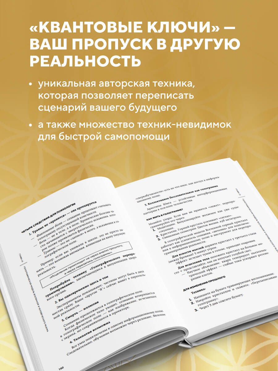 Что Вас ждет внутри? Теория квантовой психологии: что это на самом деле, откуда берет свои начала и почему она намного ближе к нейропсихологии, чем вы можете представить, практики-невидимки — авторские техники, которые занимают буквально несколько минут, но эффект наступает быстро, глубокие практики для проработки своего состояния и улучшения жизни, а глвное — уникальная авторская техника "Квантовые ключи", с помощью которой вы сможете прописать себе то будущее, какое захотите!